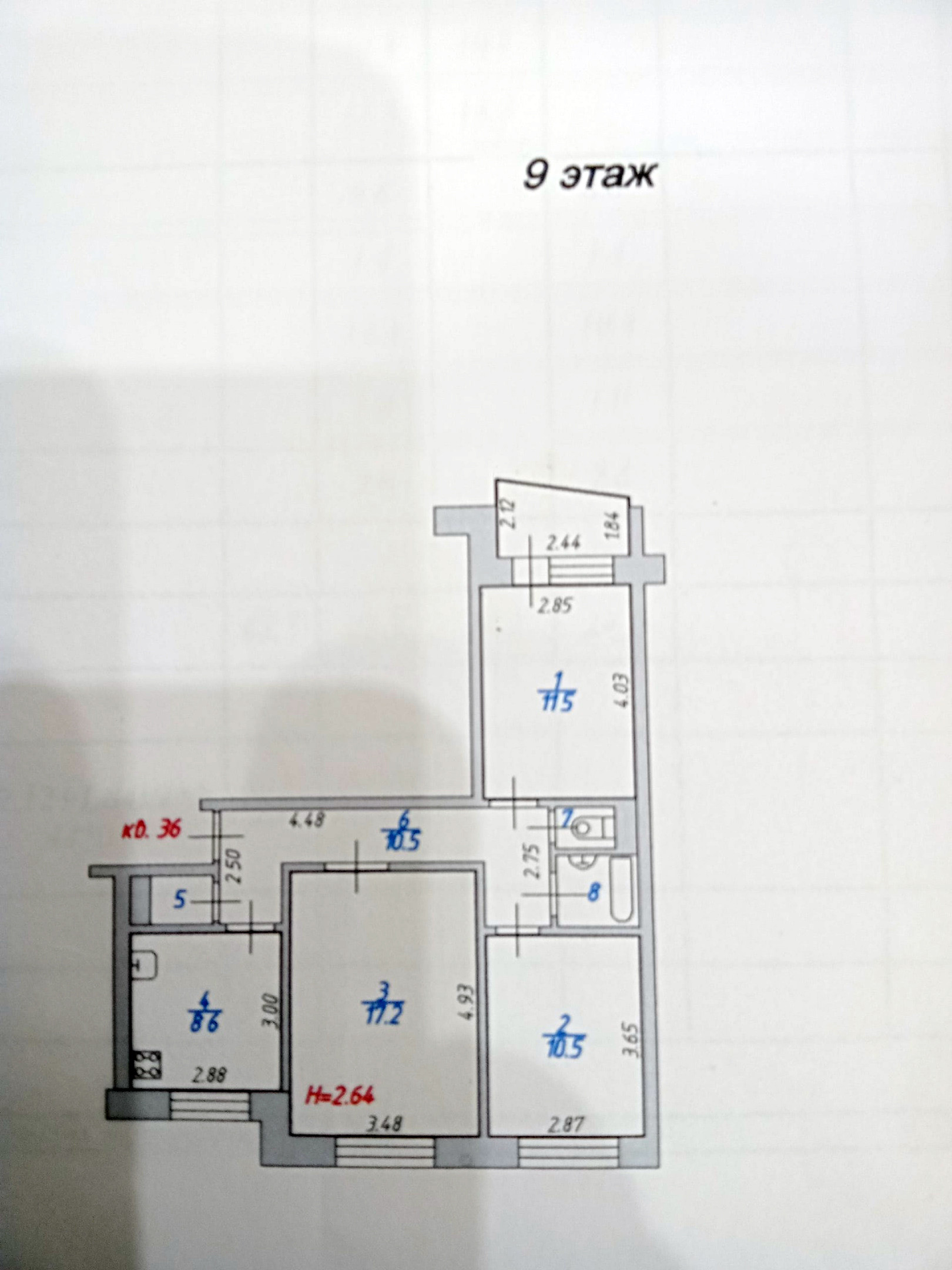 Высота потолков 2.5 м