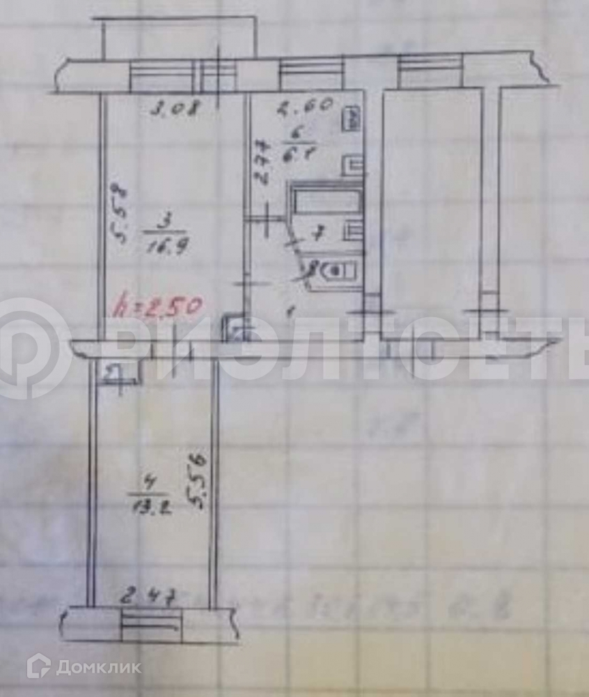Двухкомнатная квартира с балконом.