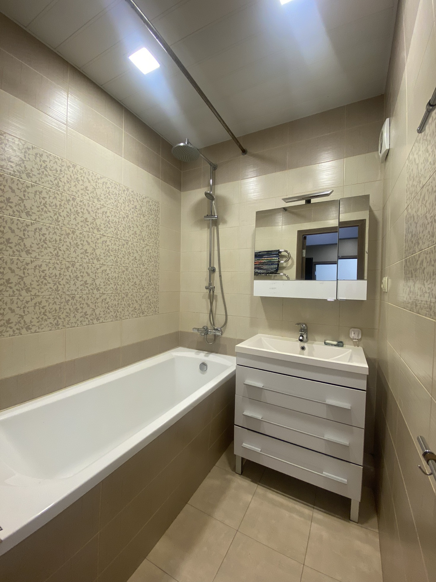 Был выполнен качественный ремонт. Пол - отделка ламинат, подогрев: коридор, с/у, мал комната. Установлены натяжные потолки, менялась э/проводка. Встроенная кухня с техникой входит в стоимость.