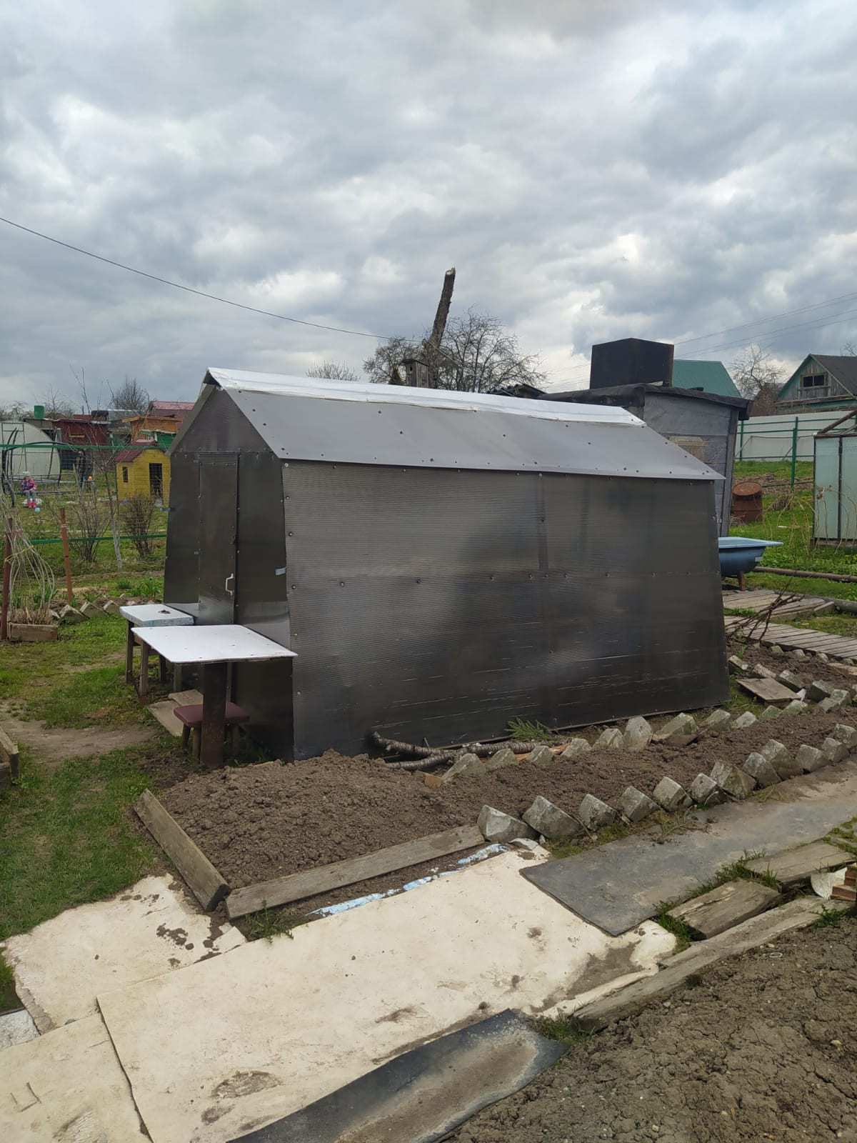 Крепкий дом на ленточном фундаменте. 2-этажа 4*5метра.В доме есть мебель на кухне и в комнате, газовая плита. Подключено электричество круглогодично в летний период вода.