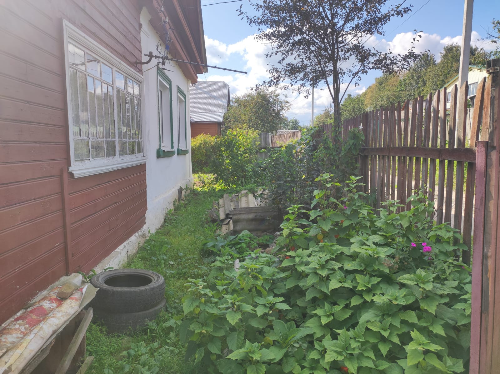 дом шлакобетонный, свет, скважина, вода в доме, газ, септик, погреб, насаждения, участок обработан