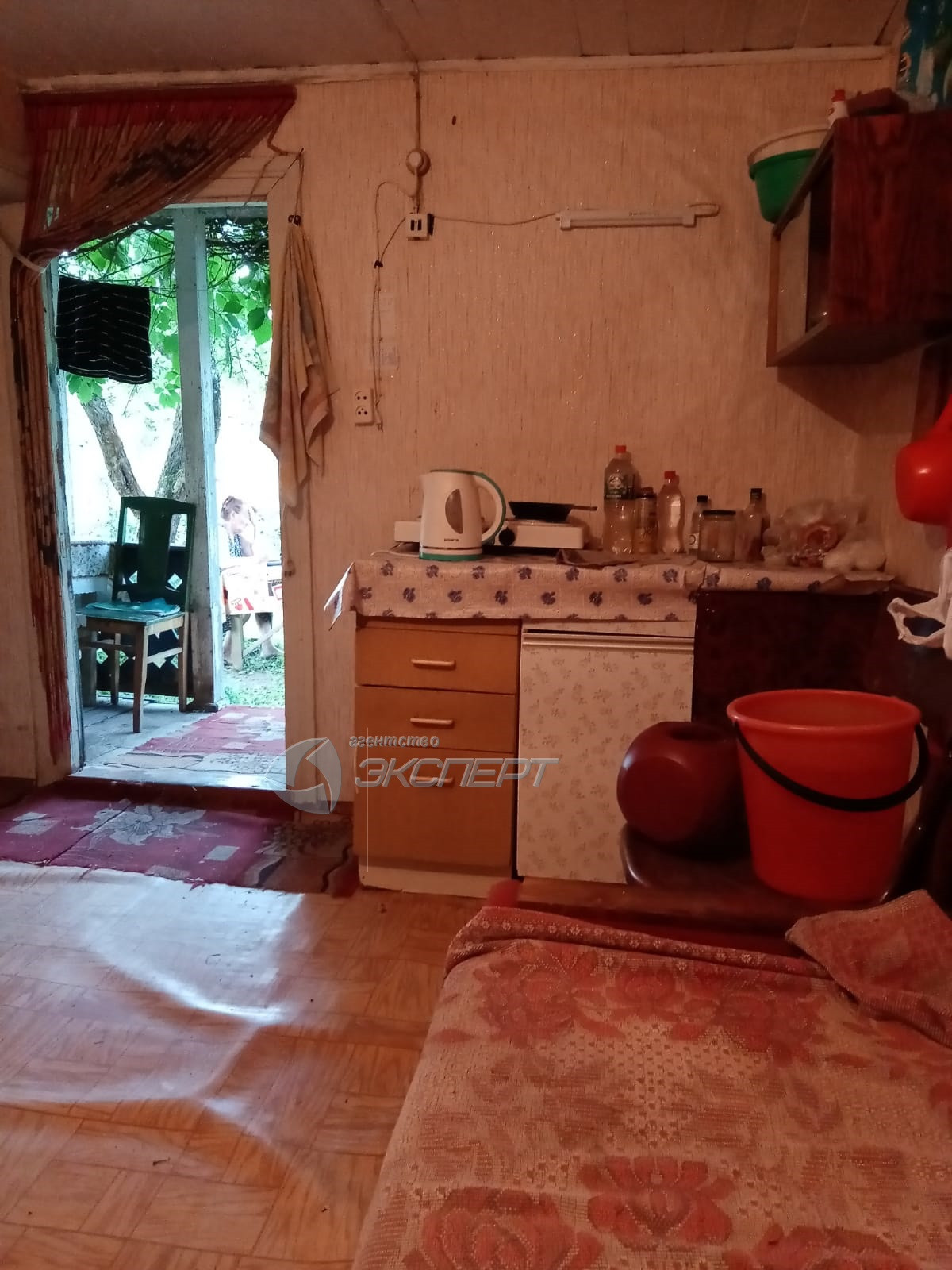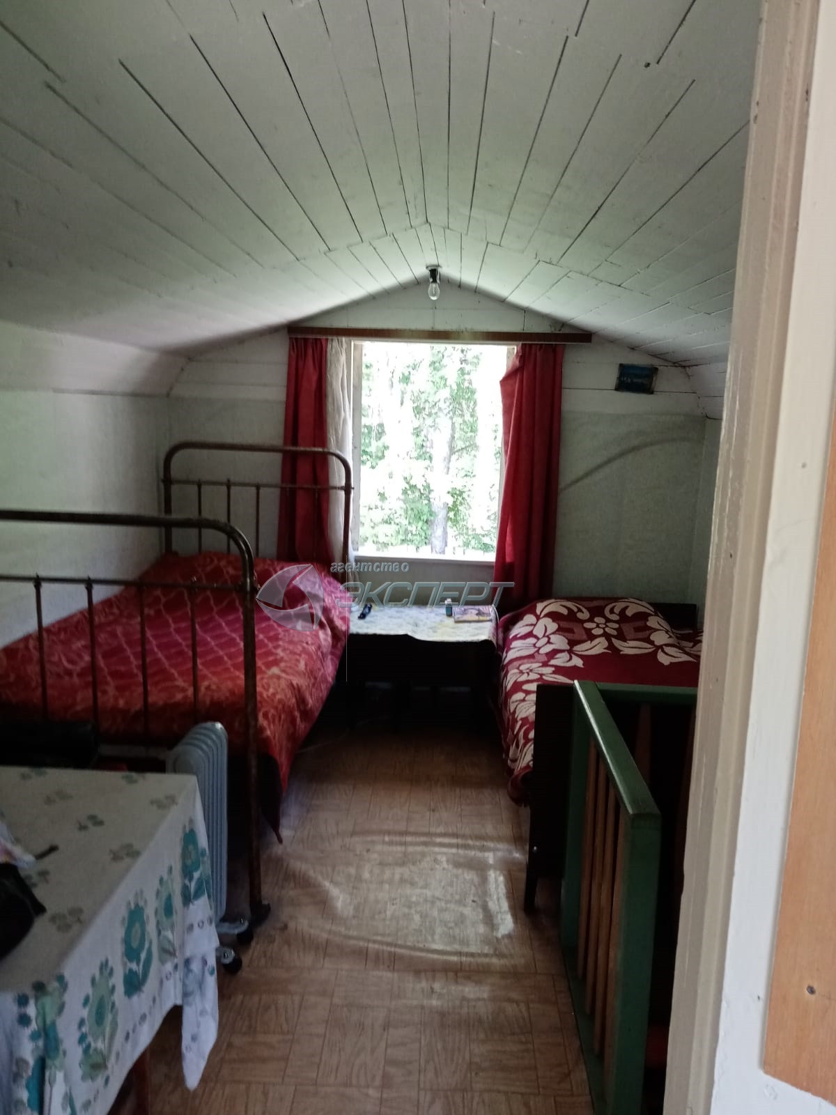 Дачный  дом - двухэтажный с мансардой. Общая площадь 40 кв.м. На 1-ом этаже - кухня - столовая. На 2-ом этаже - 1 комната с выходом на балкон. В доме есть электричество. Материал стен – брус. Дому нужен не большой ремонт крыши, крыльцу, входной двери.