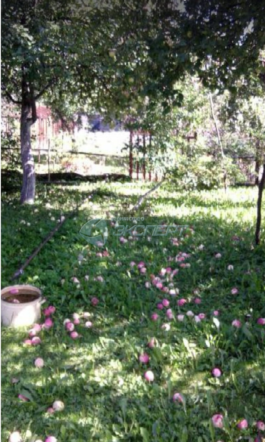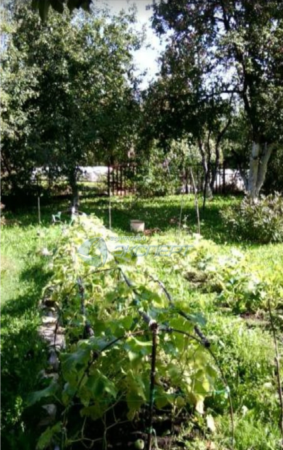Участок полностью огорожен сеткой - рабицей на железных столбах. По лицевой стороне забора есть въездные ворота для стоянки автомобиля. Участок ровный. На  участке имеются плодовые деревья, кусты и цветы (груша, 5 яблонь, слива, вишня, смородина). Есть вода для полива.