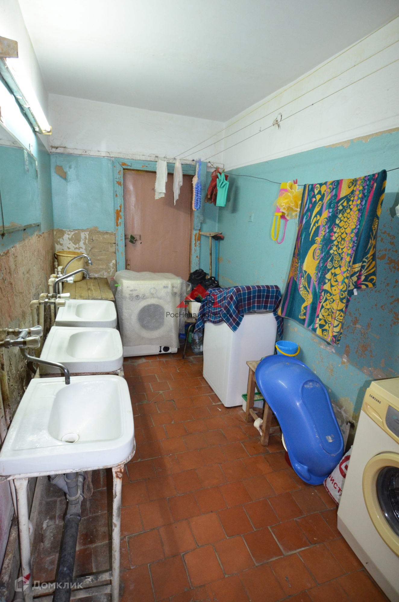 Комната требует ремонта, это очень хорошая возможность сделать свой индивидуальный ремонт. Есть одна соседка в пролете, очень милая женщина.