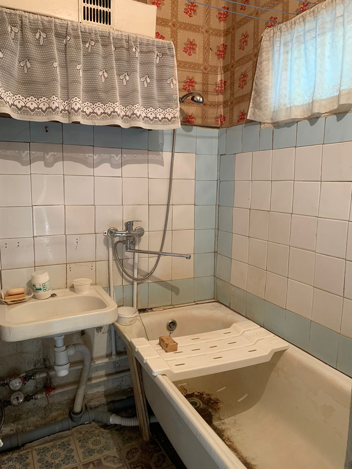 Напольное покрытие линолеум. Потолки высокие. Ванная