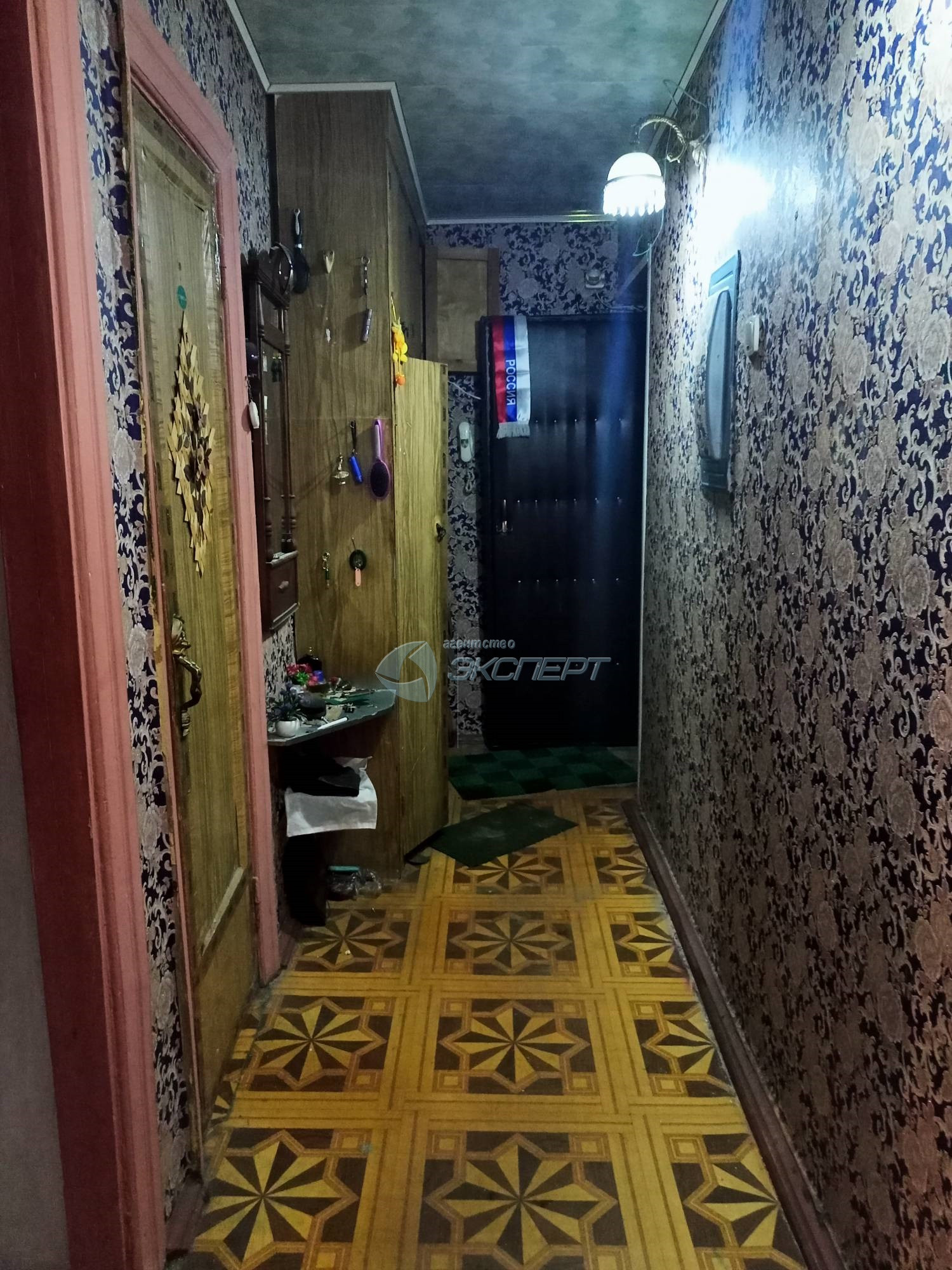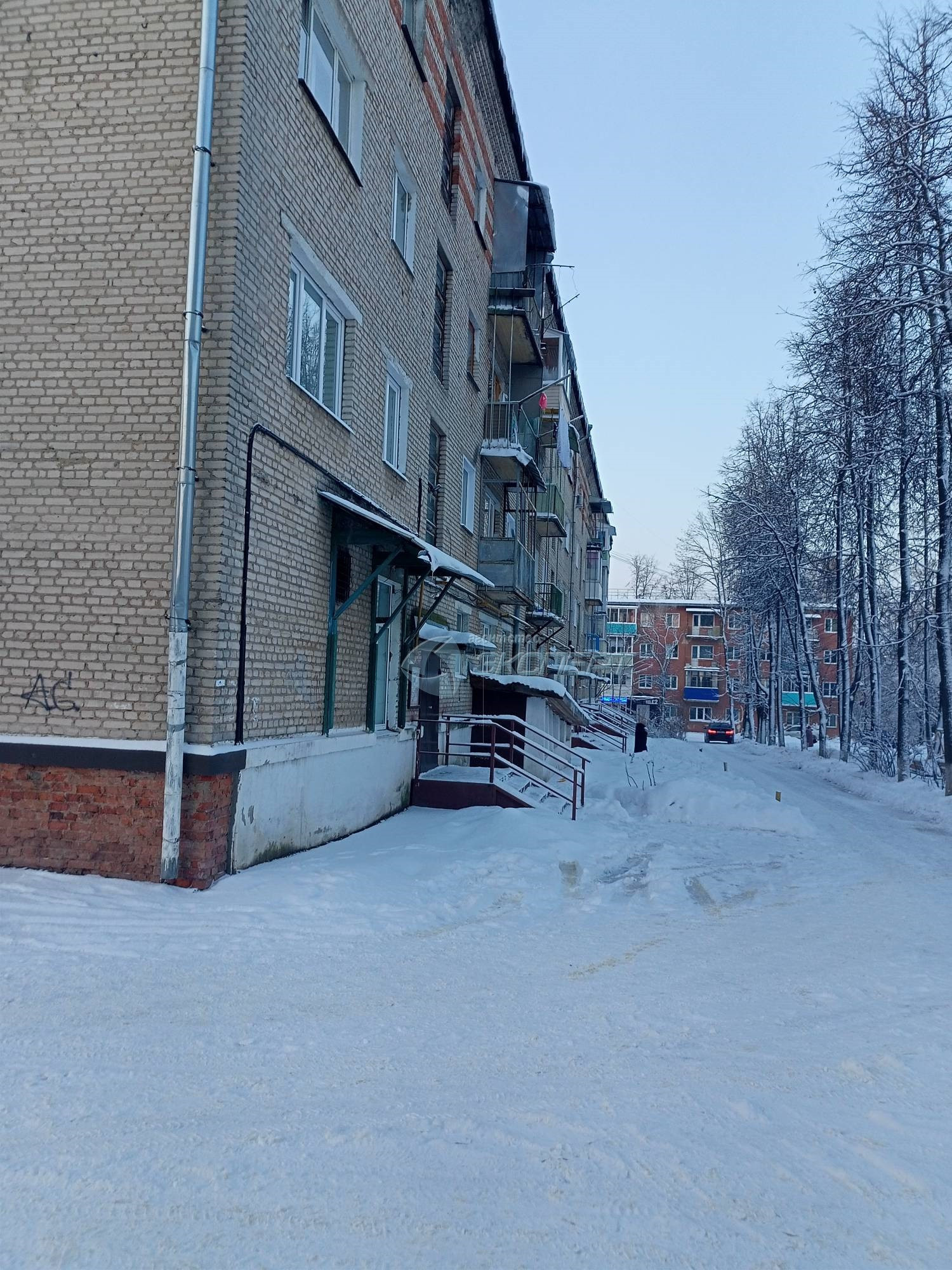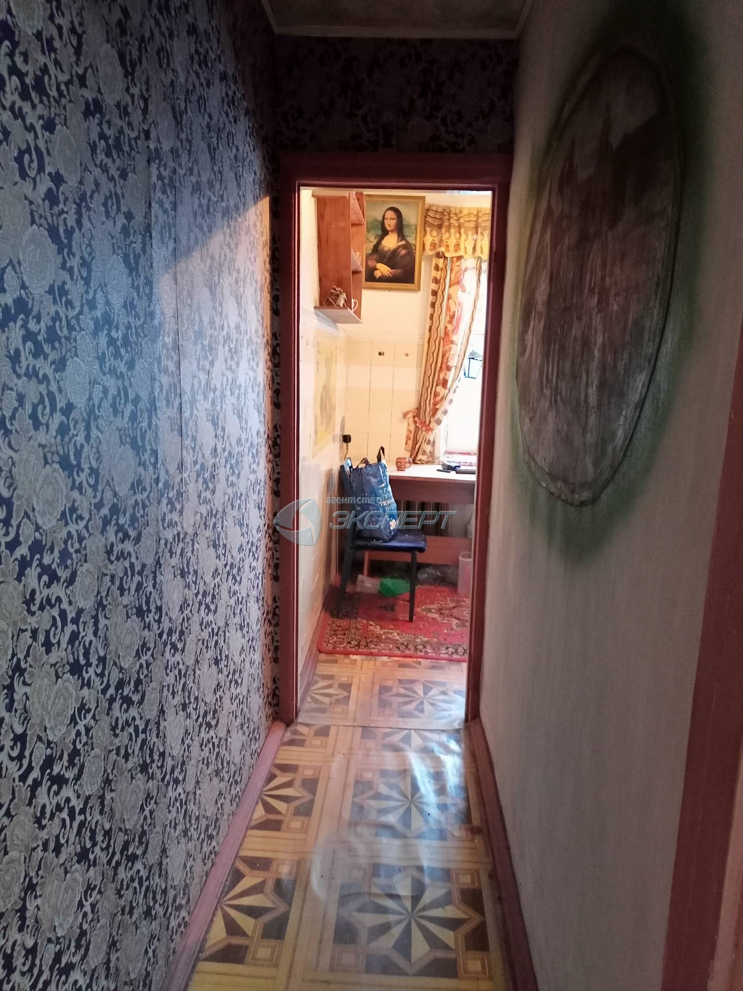 Площадь общая 43,8 кв.м., жилая 27 (17+10) кв.м., кухня 6 кв.м. Комнаты смежные, широкий коридор, кладовка со светом. Санузел совмещён, ванна отделка плитка, установлены счётчики на воду. В квартире окна деревянные, входная дверь железная, балкон не застеклён. Квартира не угловая, тёплая.