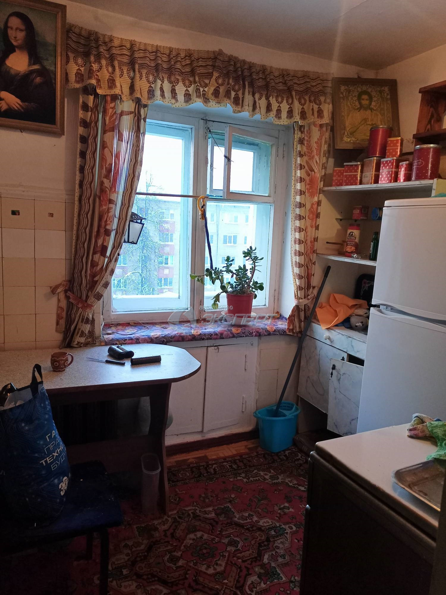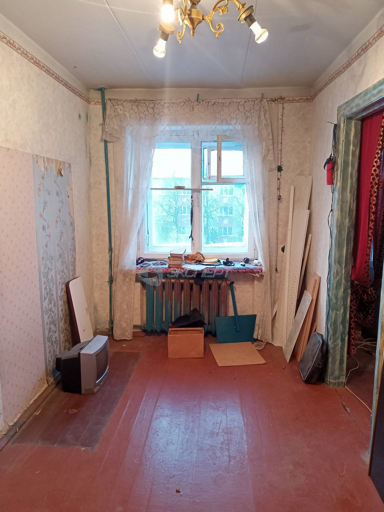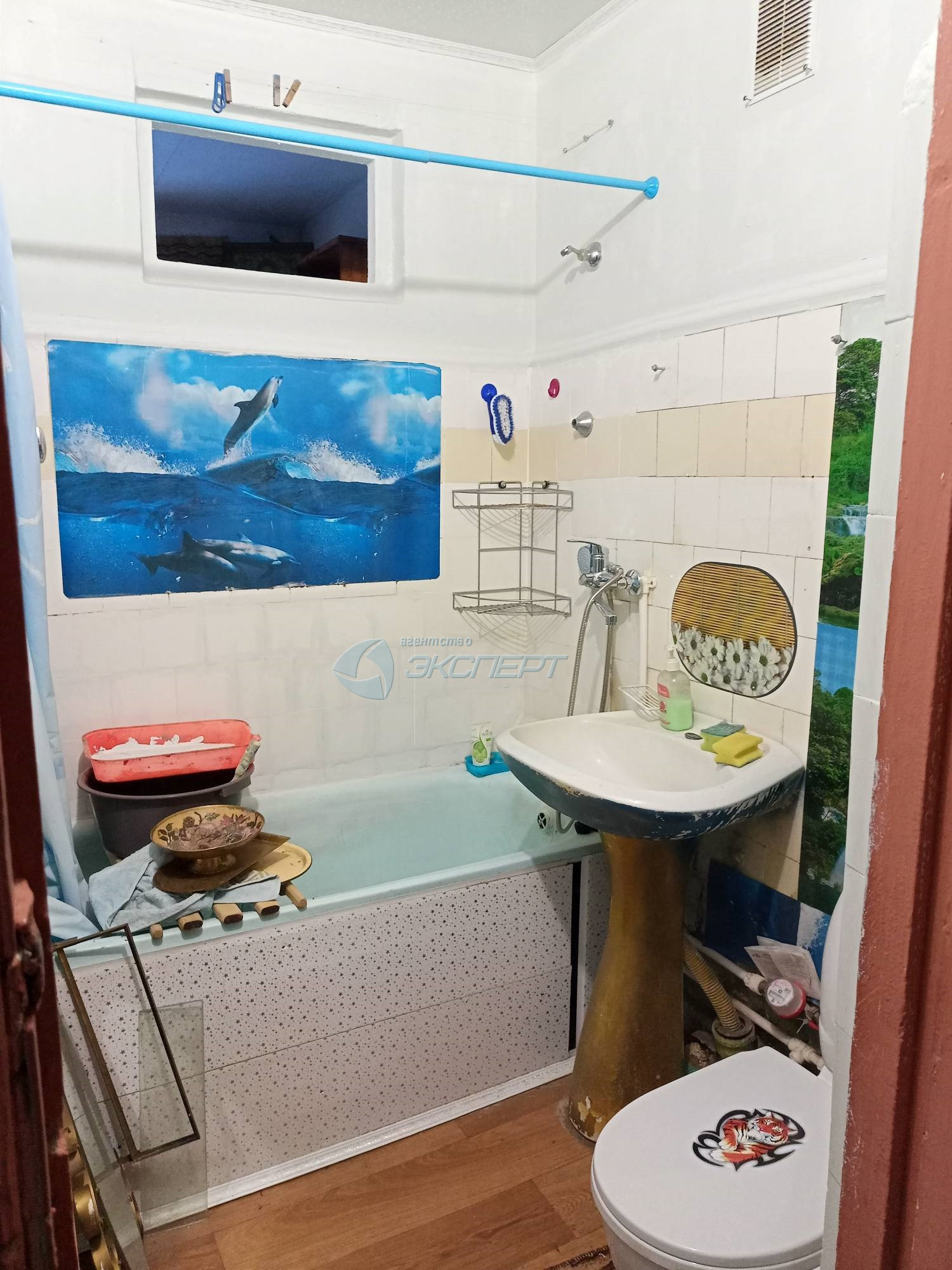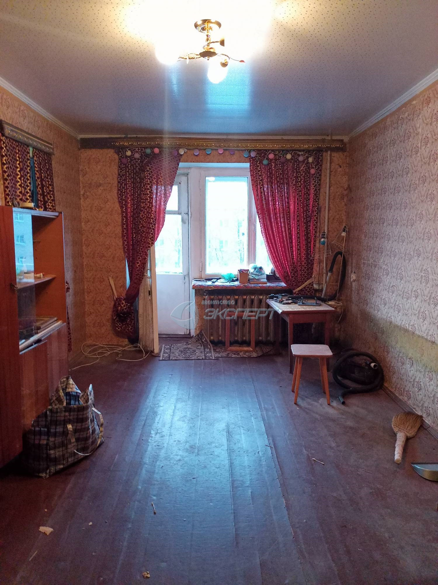 Площадь общая 43,8 кв.м., жилая 27 (17+10) кв.м., кухня 6 кв.м. Комнаты смежные, широкий коридор, кладовка со светом. Санузел совмещён, ванна отделка плитка, установлены счётчики на воду. В квартире окна деревянные, входная дверь железная, балкон не застеклён. Квартира не угловая, тёплая.