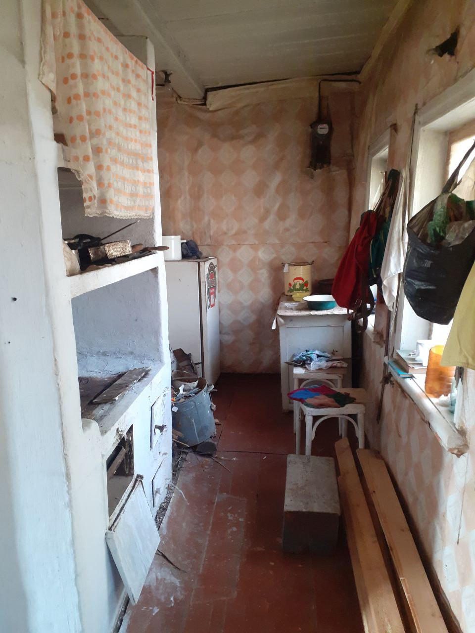 Есть холодильник, газовая плита, хорошая русская печка, парковочное место, 6 спальных мест и другая мебель. Рядом с домом колонка с питьевой водой.