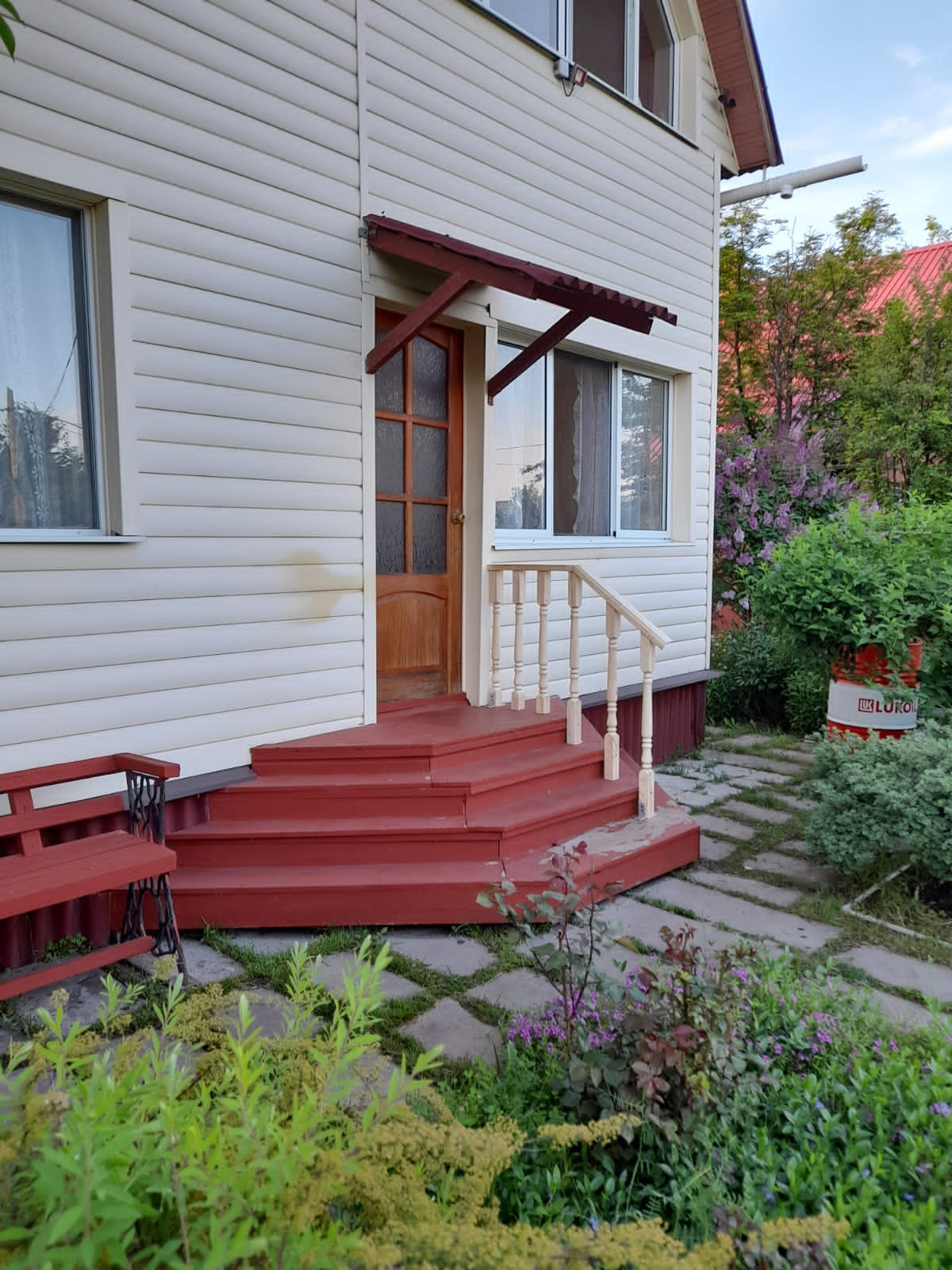 Продается любимый ухоженный участок в коллективном саду "Березка" на окраине п. Косулино Белоярского района в 25 км от Екатеринбурга. Удобная дорога из города по Сибирскому тракту или его дублеру, либо по Кольцовскому тракту через Арамиль. Остановка электрички ст. Арамиль находится в 15 минутах ходьбы. Наш участок расположен на дальней улице сада, отдельный въезд на 14 участков, участок граничит с лесом. Межевание участка проведено, дом зарегистрирован. Электричество заведено в дом, 220В, самонесущий изолированный провод, есть возможность провести 380В от столба. Водопровод летний с 1 мая по 01 октября без перебоев, колонка рядом, есть место под скважину. Двухэтажный дом из бруса 180х180см общей площадью 60 м2 обшит сайдингом, внутри обшит вагонкой, установлены пластиковые стеклопакеты, отопление печное. Есть отличная баня с отдельной парильной, помывочной и комнатой отдыха. Из комнаты отдыха выход на хозяйственный двор. Теплица из алюминия и стекла 5,6 х 2,5м, имеются необходимые хозяйственные постройки для хранения садового инвентаря. Оборудована стоянка на 2 машины, участок огорожен. Посажены многолетние деревья, кустарники, цветы.