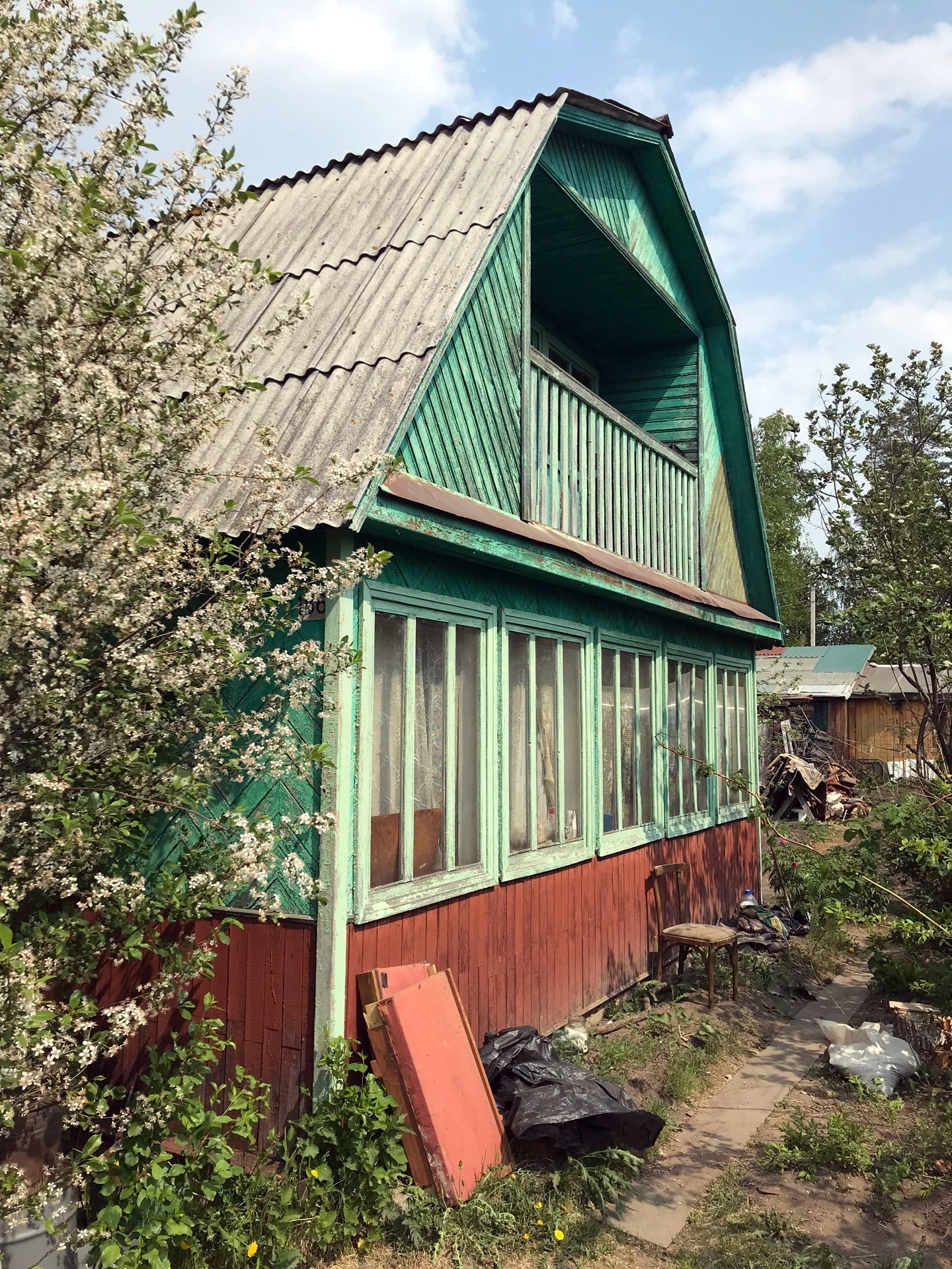 Дом: 6*6м из бруса 150/150, монолитный фундамент с ямой для хранения овощей и заготовок. Первый этаж: летняя веранда 6*1,5 м, кухня с печью, комната 18 кв.м. Второй этаж так же подходит для комфортного проживания, только необходимо сделать косметику. Окна деревянные с двойным остеклением. Дом вполне подходит для круглогодичного проживания.