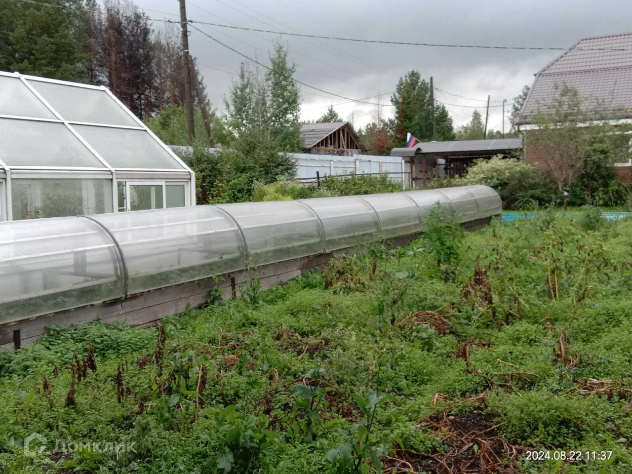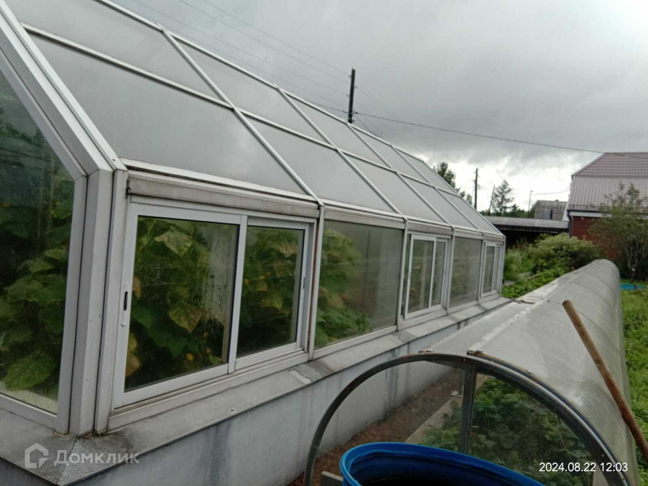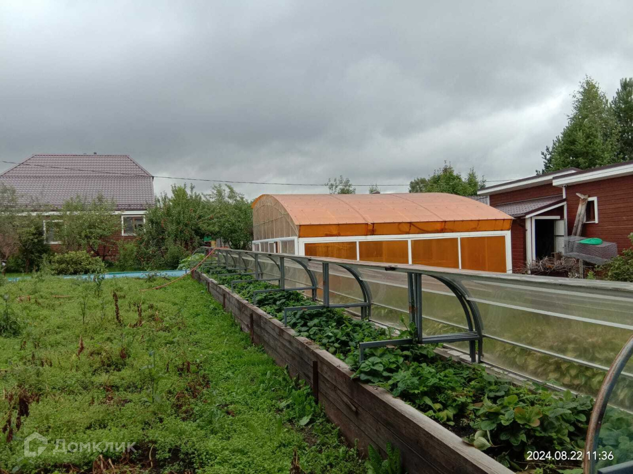 На территории участка много посадок. Это и плодоносящие яблони, туи разных сортов, шикарные розы и много других диковинных многолетних растений. Есть теплицы из ПВХ профиля, клубника растет в специальных парниковых грядках.