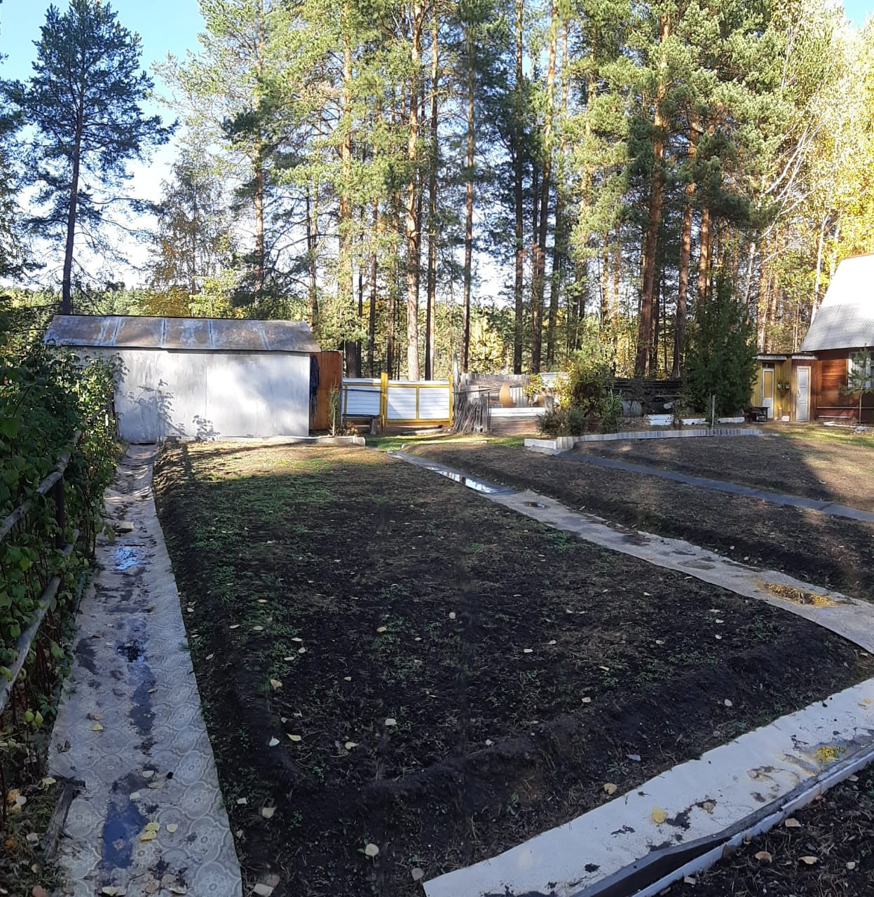Садовый участок расположен среди сосен, в экологически чистой лесной зоне. Есть выход на берег пруда, где можно купаться или рыбачить. Будущим собственникам, лодка в подарок!