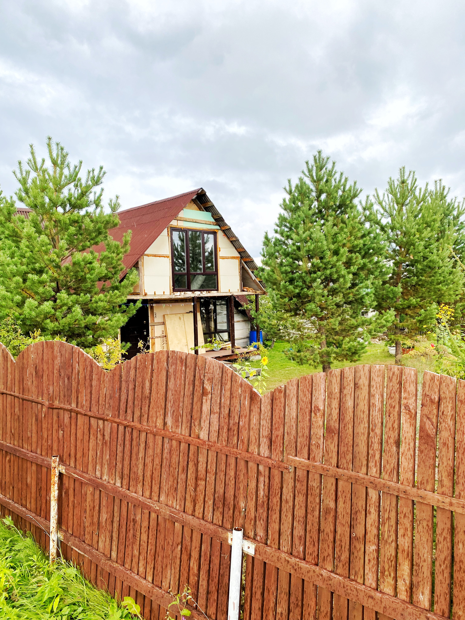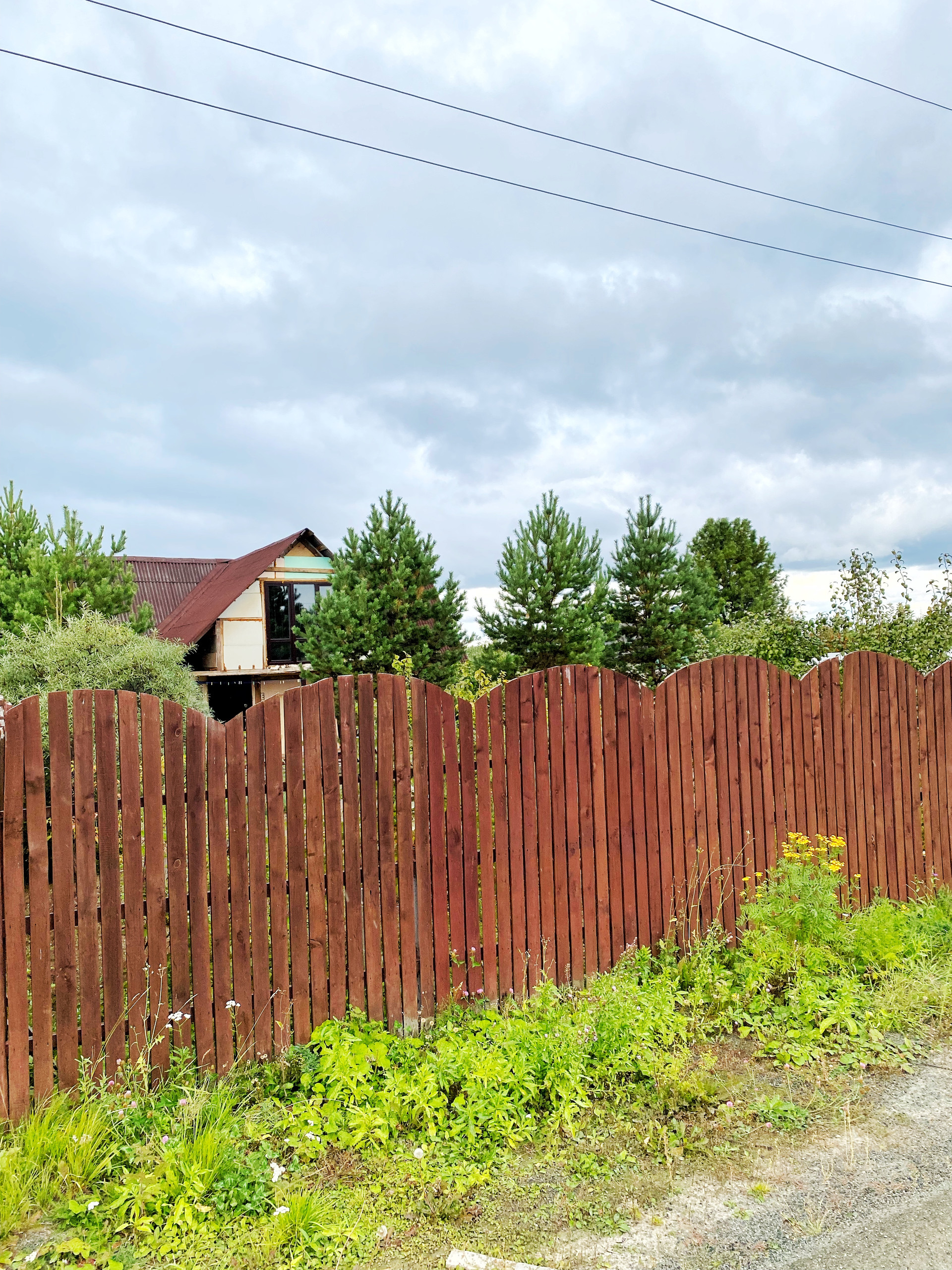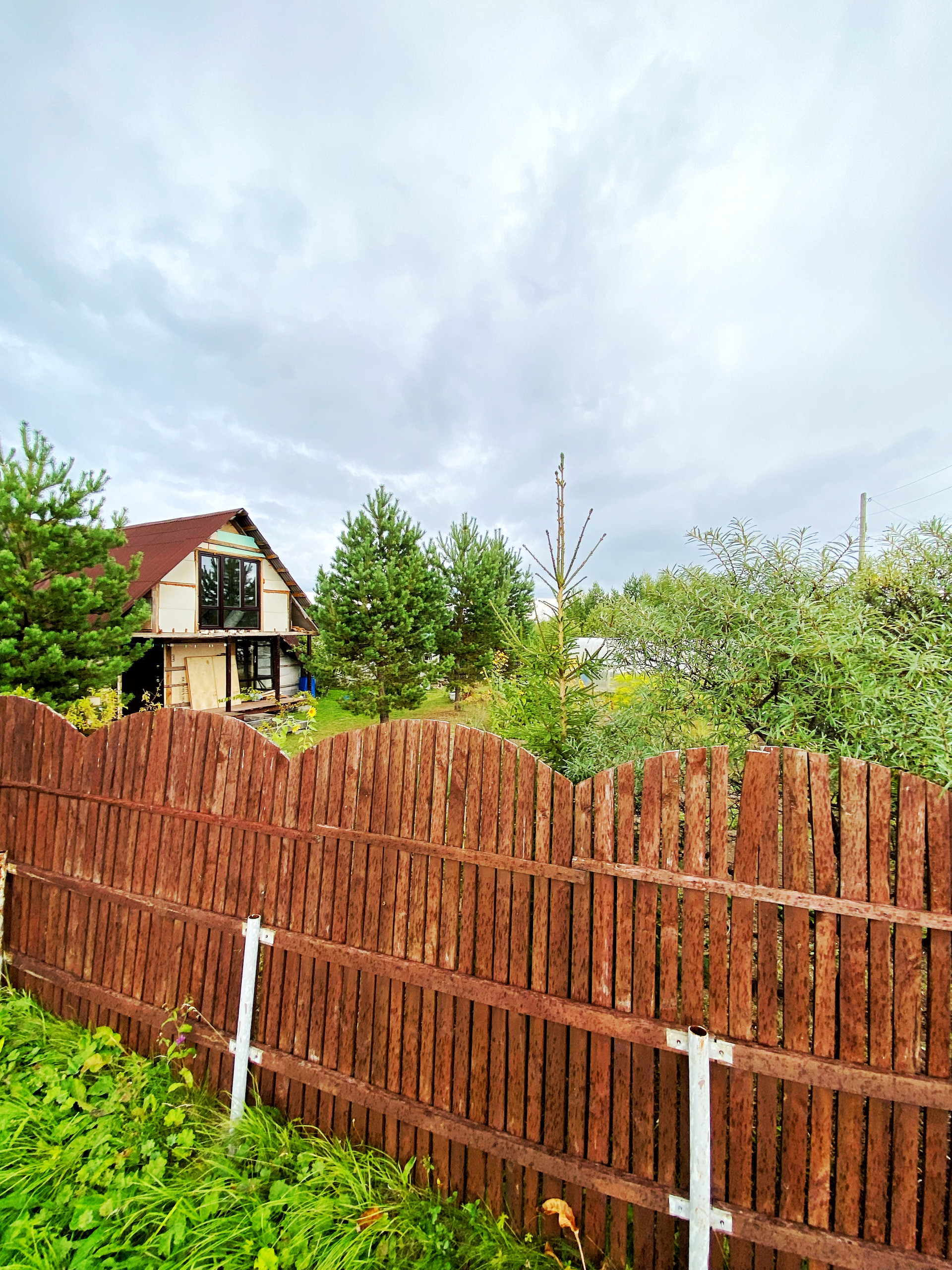 ☑️ участок по всему периметру огорожен забором, высота 1,8 м. (деревянная рейка с покрытием на металлических столбах)