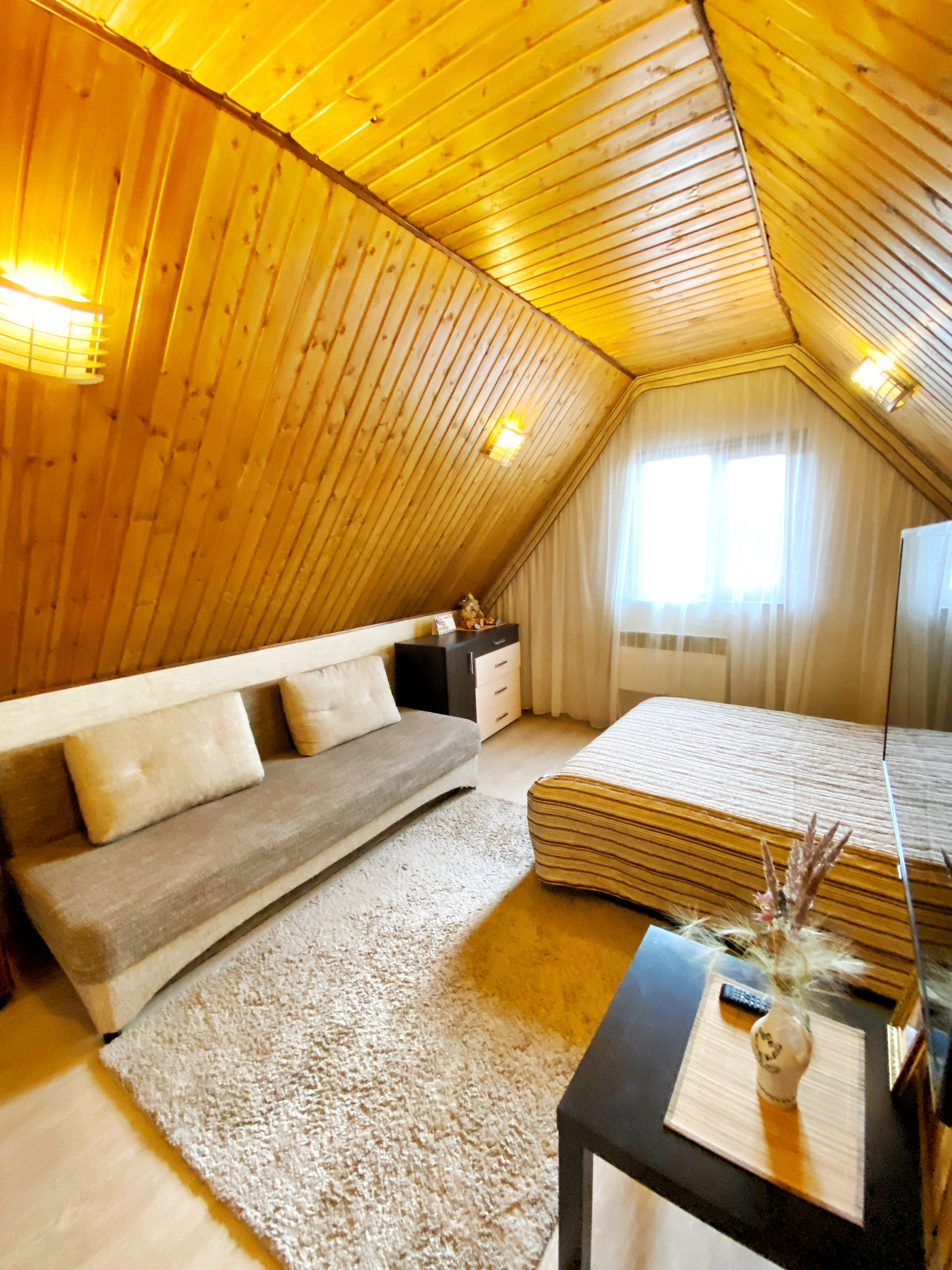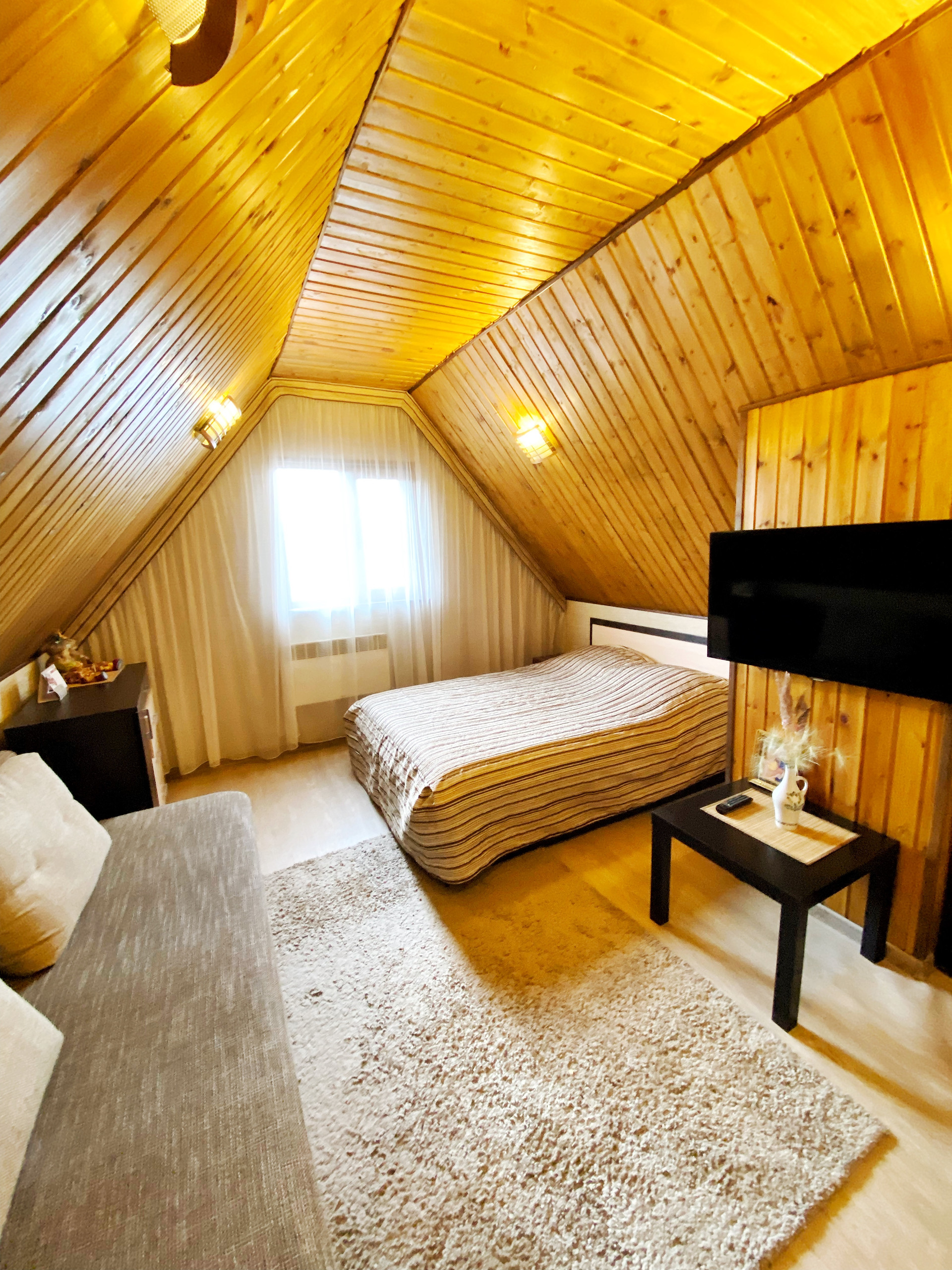 Электричество и холодная вода круглый год, дом очень тёплый, поэтому можно приезжать даже зимой. Он очень вместительный, подойдёт для большой семьи.