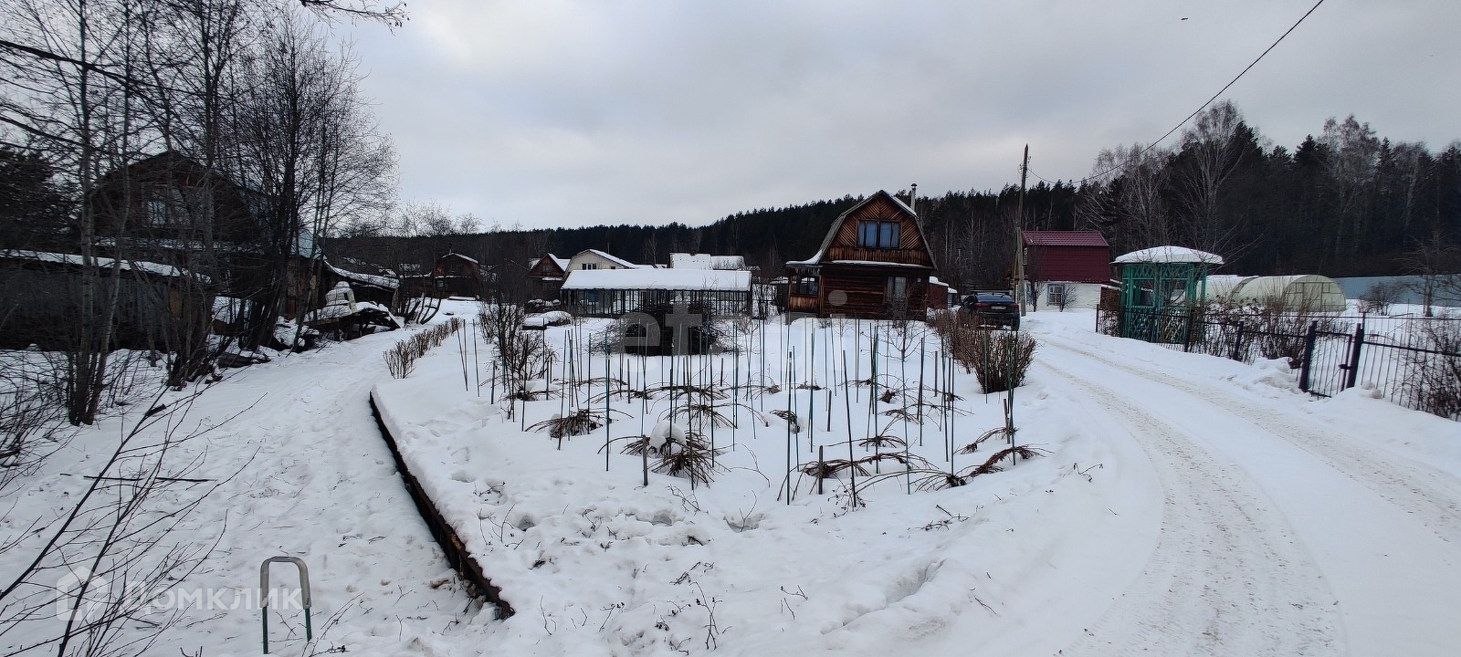 На участке есть деревянный 2этажный домик 40.4 кв.м. с верандой на 2 этаже.Есть электричество, печка, биотуалет. Оставляем всю мебель, холодильник, музыкальный центр, телевизор.