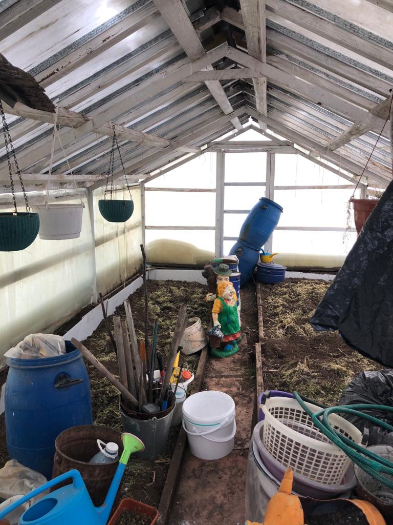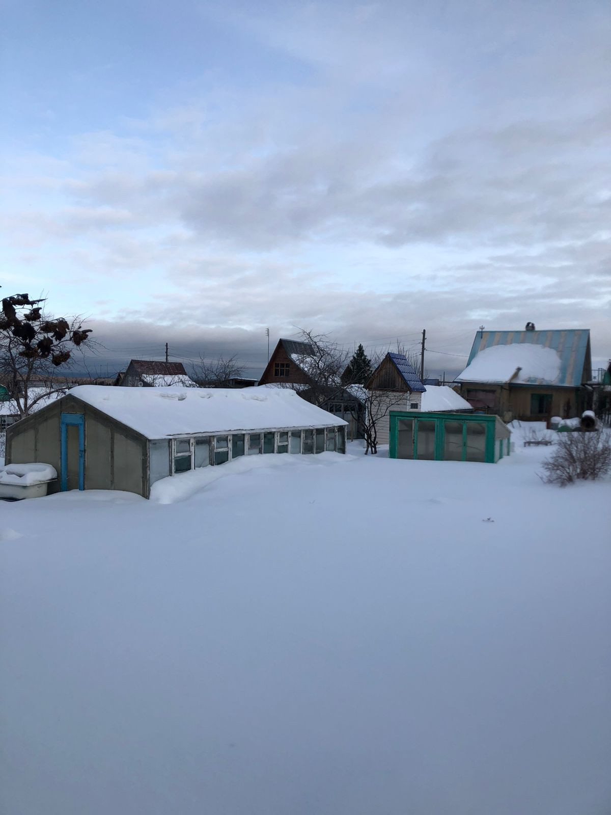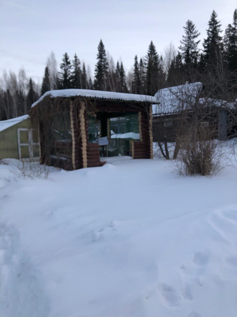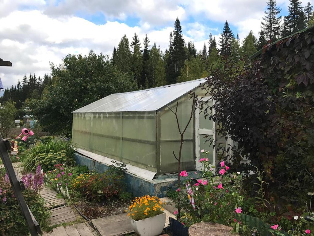 На участке расположены 3 теплицы, баня, тёплый сарай, есть небольшая беседка для отдыха, также рядом с домом установлена большая емкость для воды.