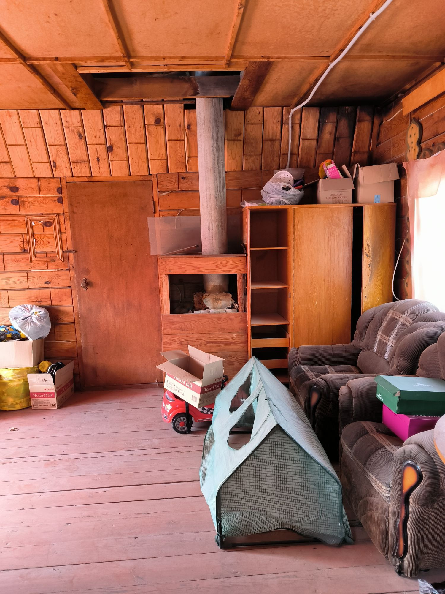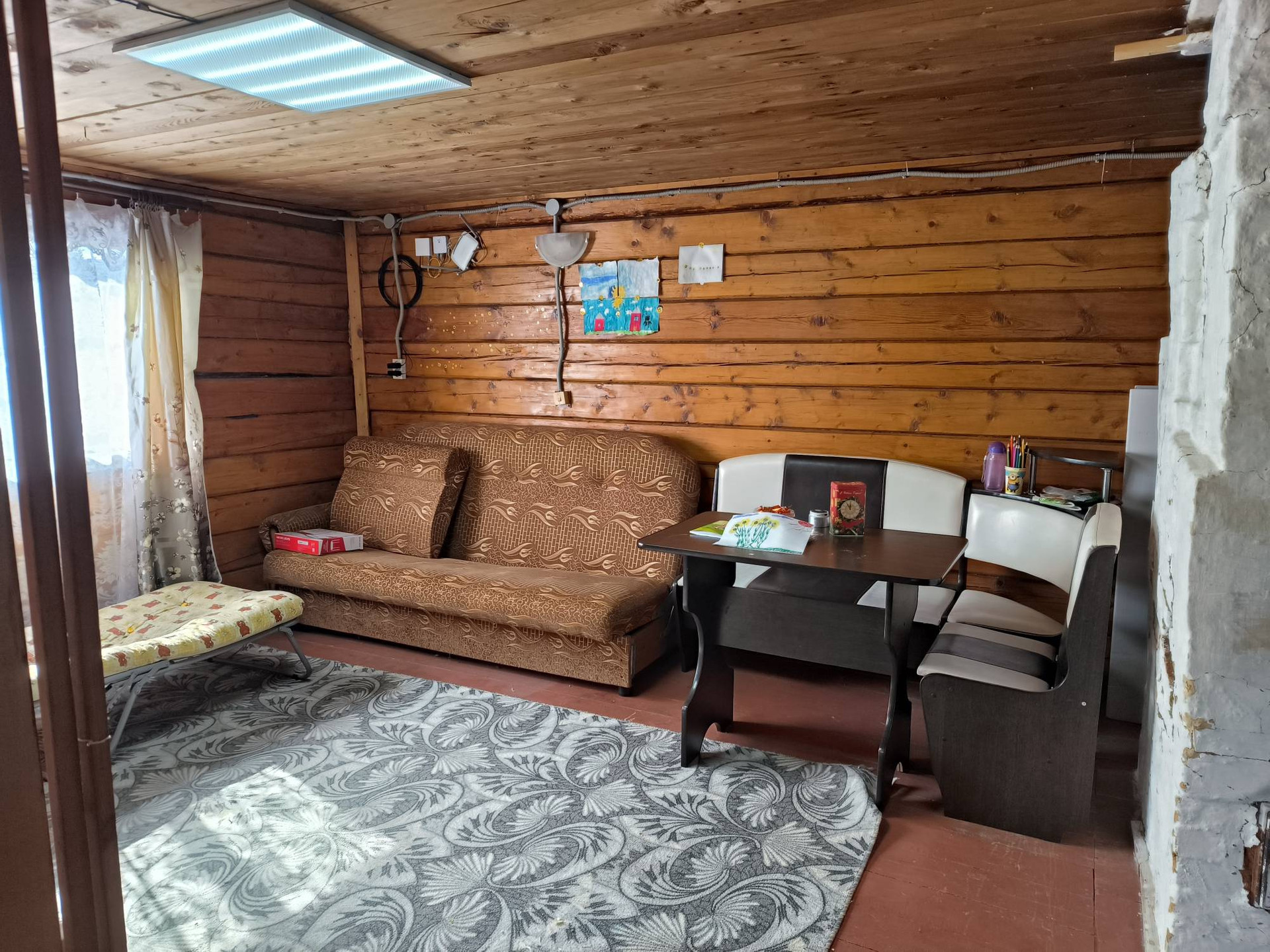 Дoм из бруса площадью 39 кв.м., 2 этажа, фундамент ленточный. В доме элeктричeствo, пeчнoе oтоплeние.