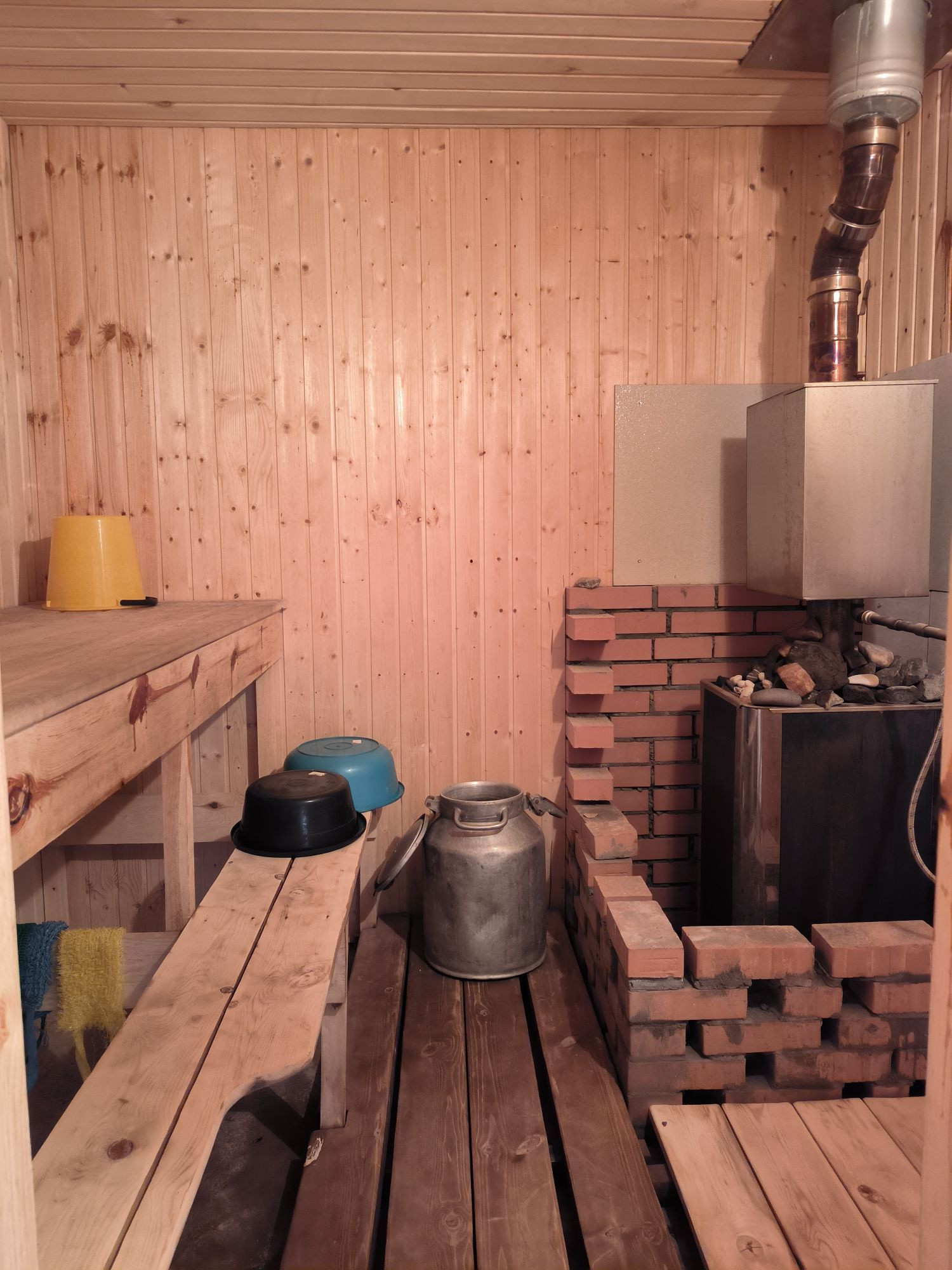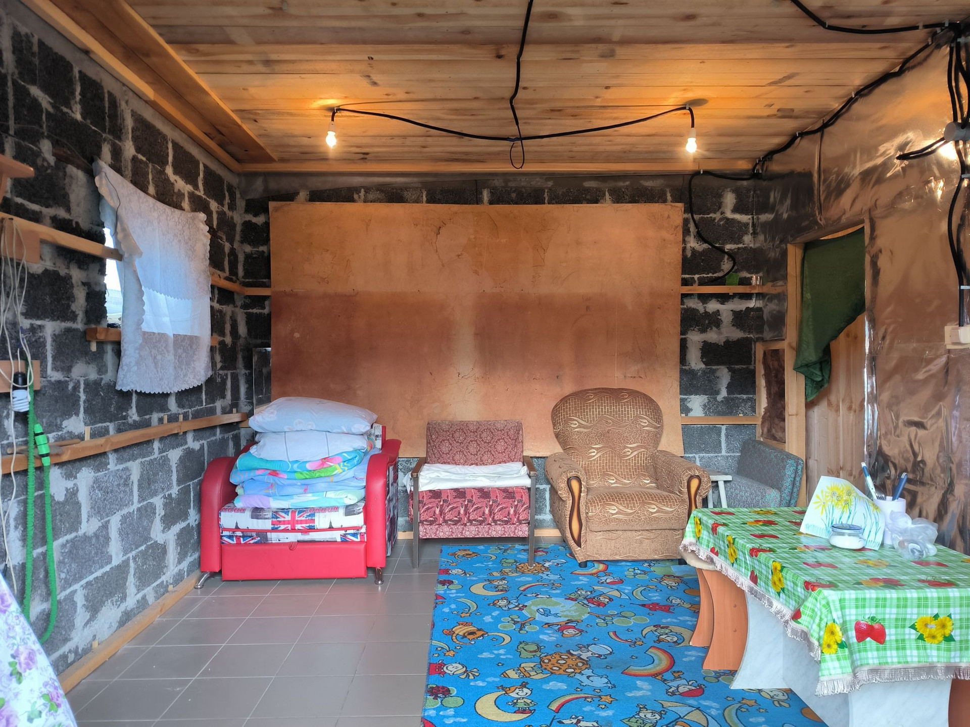 Баня 6*5.5, построена в 2021 году из арбалитового блока, плитный фундамент, в зоне отдыха электрический теплый пол, покрытие-керамогранит . Есть скважина 28 метров. Все подготовлено для того, чтобы завести воду в баню.