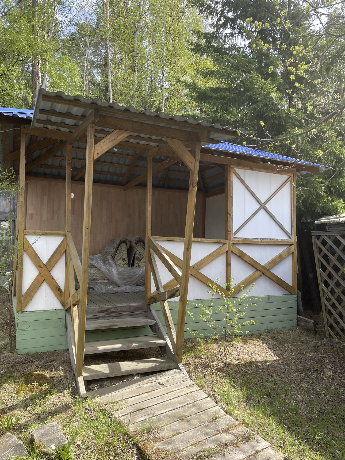 Также на территории есть беседка, сделан летний водопровод, летом есть вода холодная и горячая в доме и также поступает в баню и сделаны канализационные сливы из дома и бани. В бане в 2021 году делался ремонт: меняли все полки и поставлена новая печь из нержавеющей стали. Питьевую воду брали по договоренности у соседей хорошую из скважины.