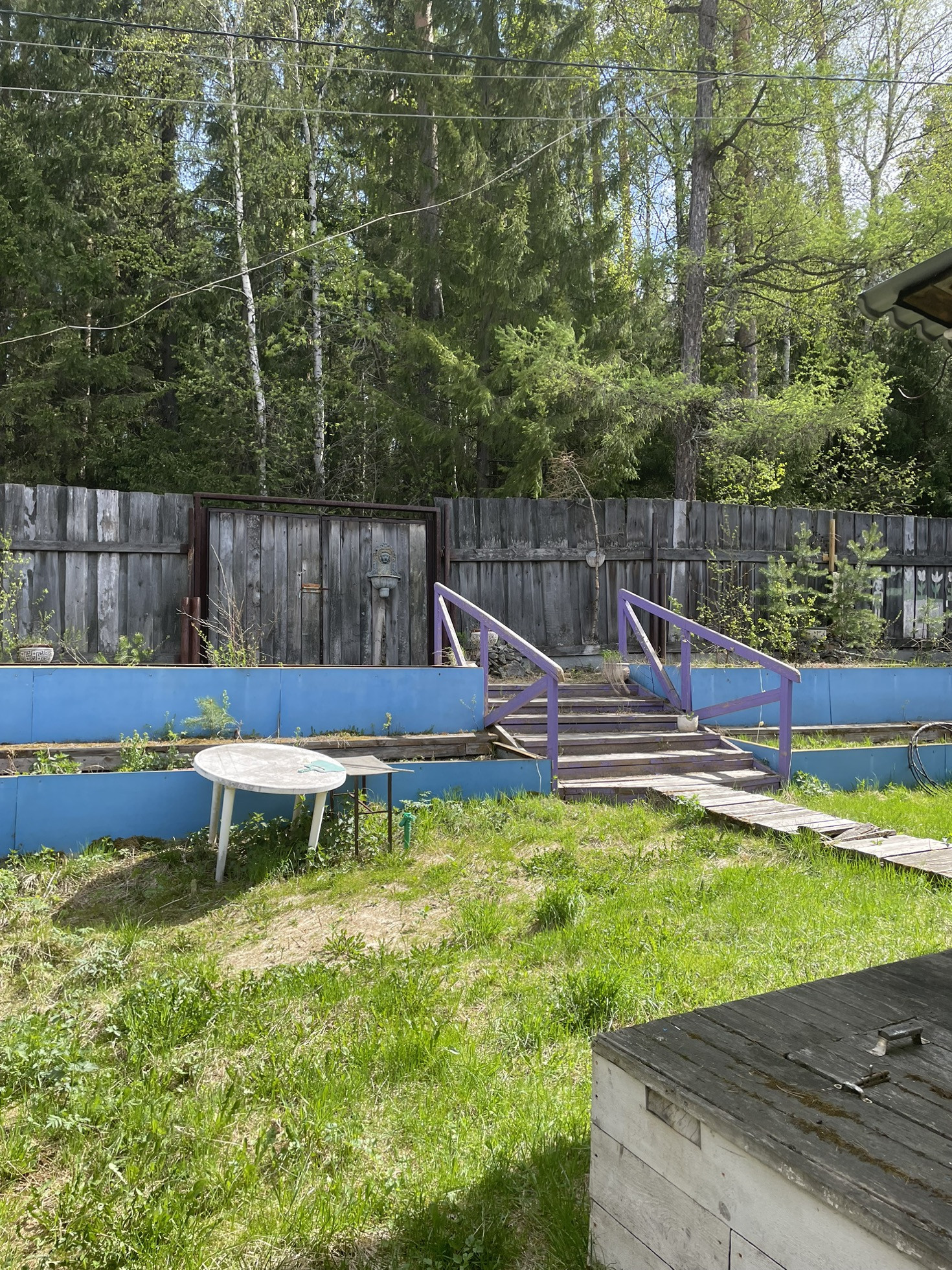 Участок в конце сада, почти никто не ездит мимо.