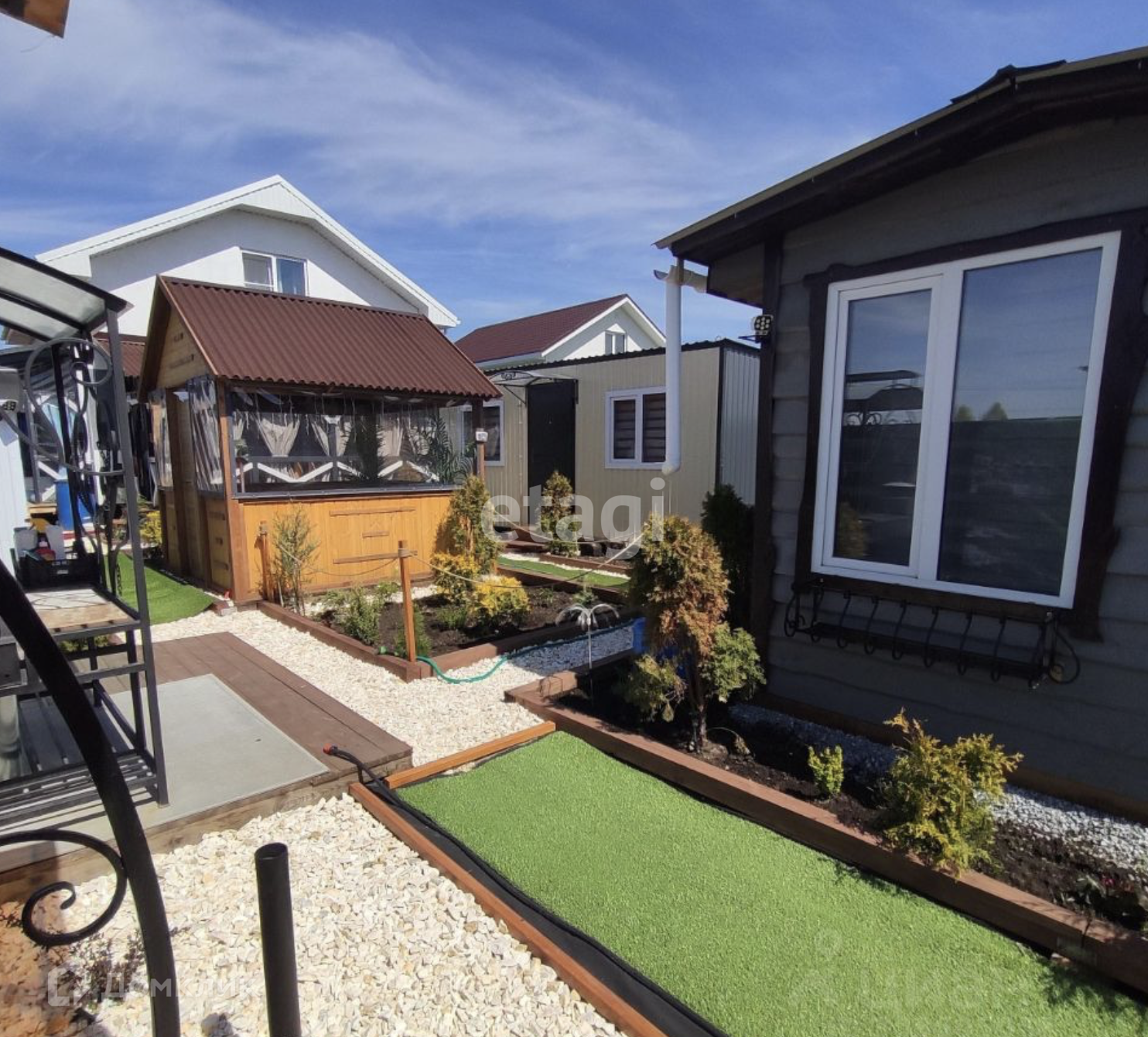 Коттедж 2023 года постройки., 120 квадратных метров. В доме 3 комнаты и кухня -гостиная, два санузла. Отопление, теплый пол на первом этаже, радиаторы на втором. В связи с переездом в доме остаётся многое новым собственникам! Участок правильной формы разработан. Заложен сад плодовоягодный и сад декаративный с множеством хвойных, многолетних цветов и кустарников. На участке новые строения. Баня, летний домик с полной отделкой и электричеством, беседка закрыта мягкими окнами по периметру от осадков и ветра тем самым комфортно в любой сезон, бытовка и сарайчик для хранения инвентаря, инструментов и вещей, теплица 18 квадратных метров, мангальная зона и стационарная качель. К дому пристроены две веранды одна закрытая мягкими окнами , вторая терраса открытая..оснащены уличными шторами для уюта . Есть небольшой огород с грядками. Дровник.. Номер в базе: 11183337. Район: Большой Исток