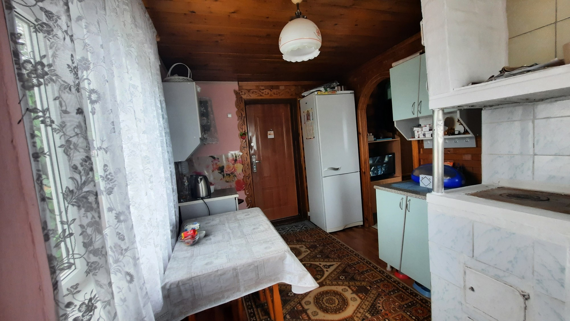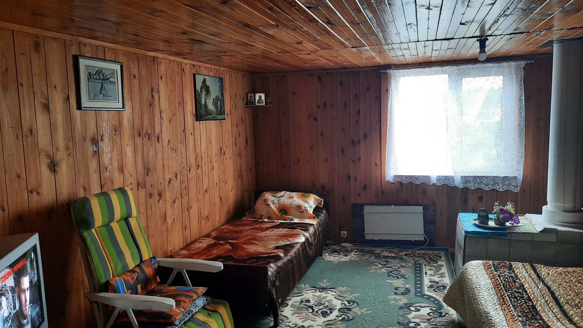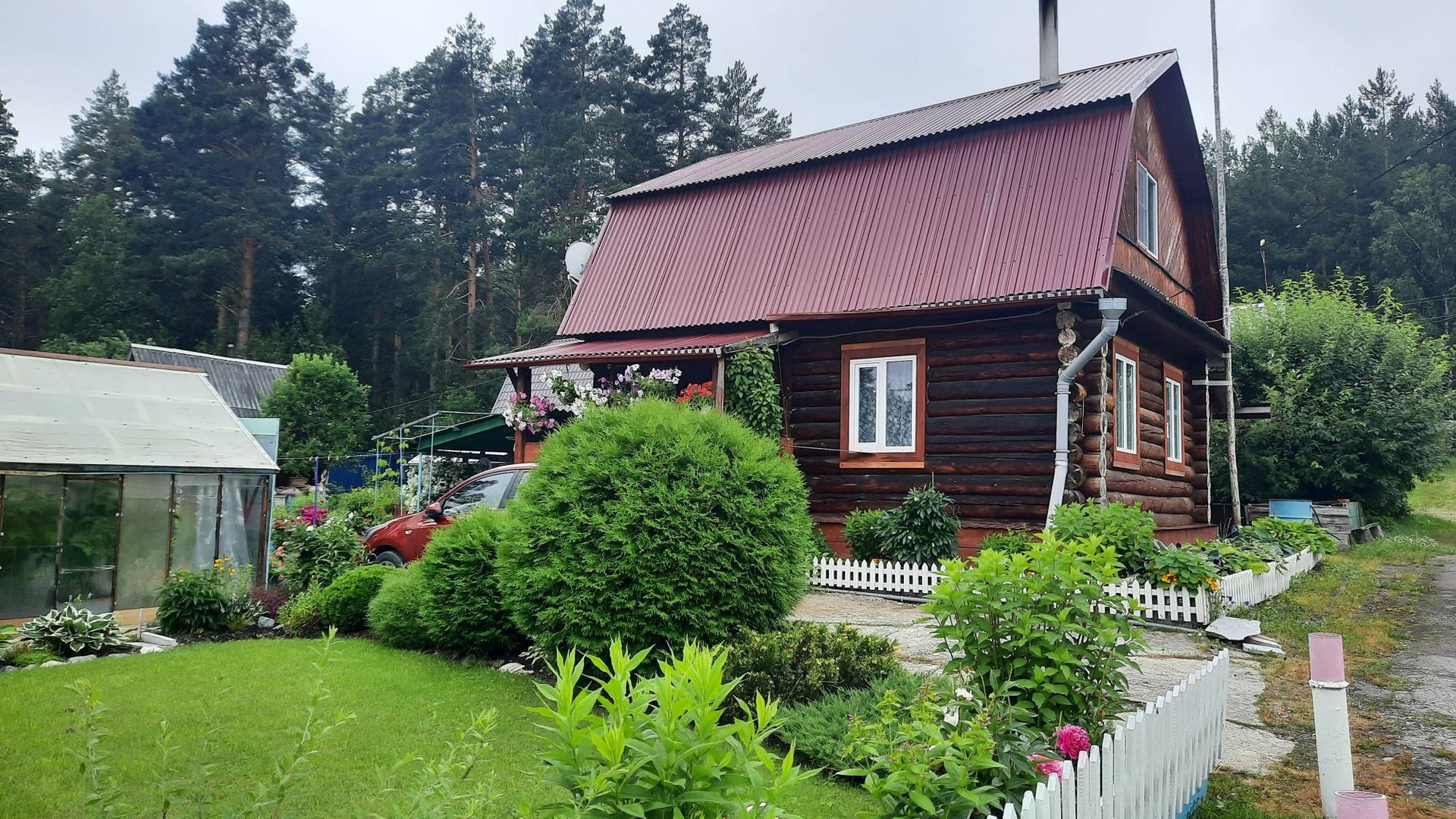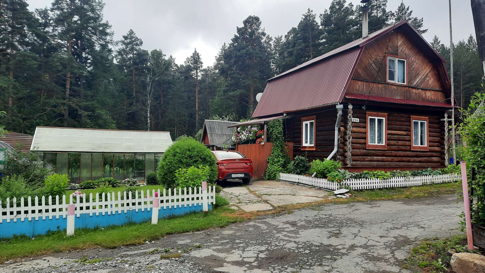 Дом уютный. На первом этаже расположены две комнаты и веранда с кухней. На втором этаже расположены комната, коридор и кладовая. Отопление печное. Есть электричество, газ (баллон),  вода. На участке расположены две теплицы, баня, беседка. Туалет расположен сразу за ограждением участка. Состояние всех построек хорошее. Земельный участок прямоугольной формы, площадью 6,4 соток. Расположен на крайней улице, со стороны леса ограждён забором, есть калитка для выхода в лес и туалет. Имеются плодово-ягодные насаждения, лужайки, декоративные растения. О местоположении: находится к 5-ти километрах от г.Полевской. Ходит общественный транспорт.