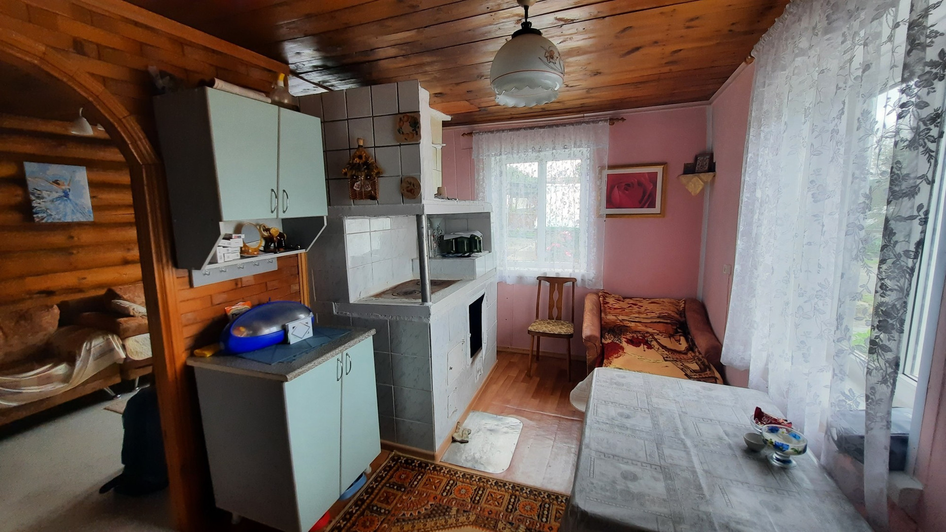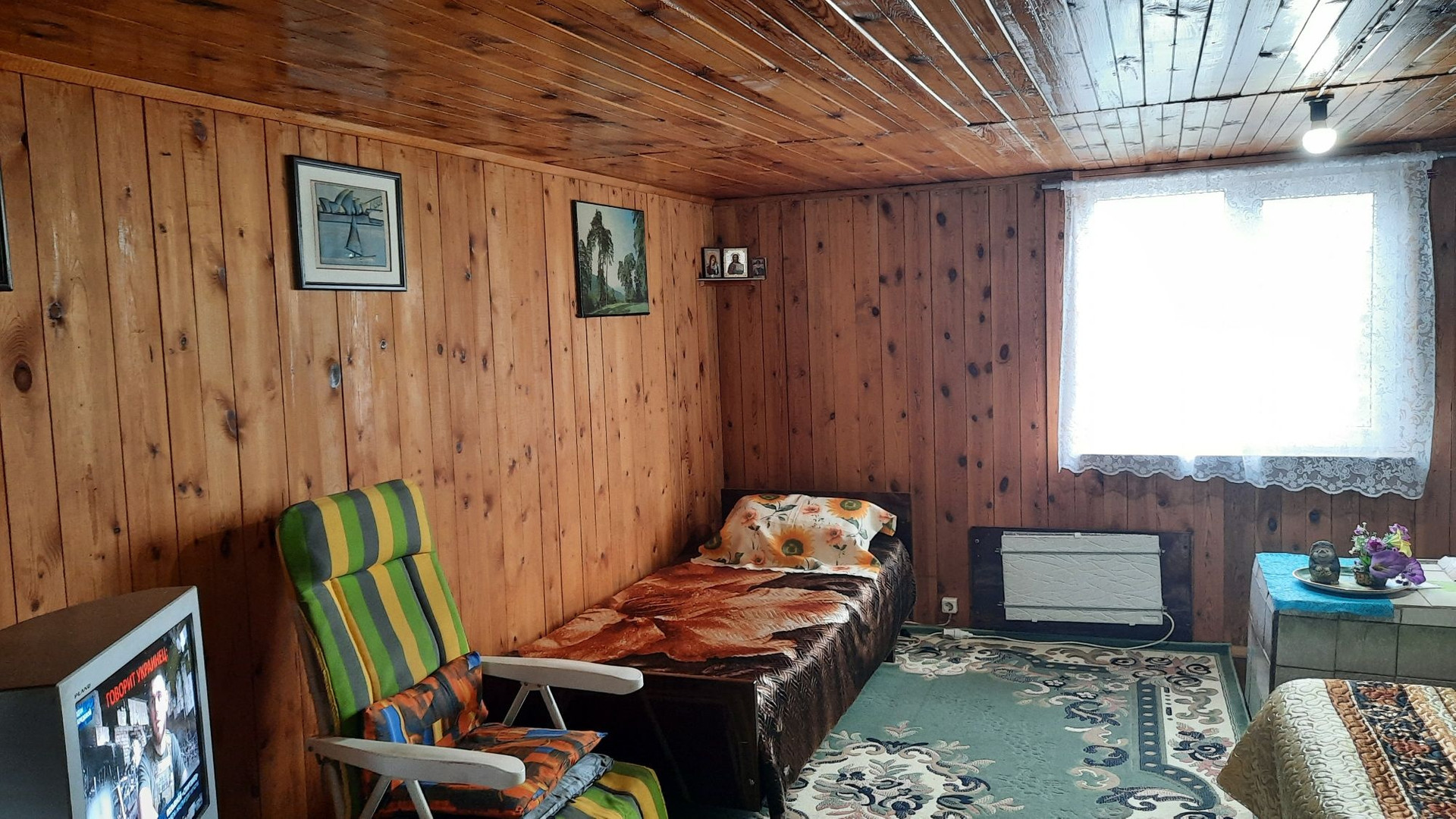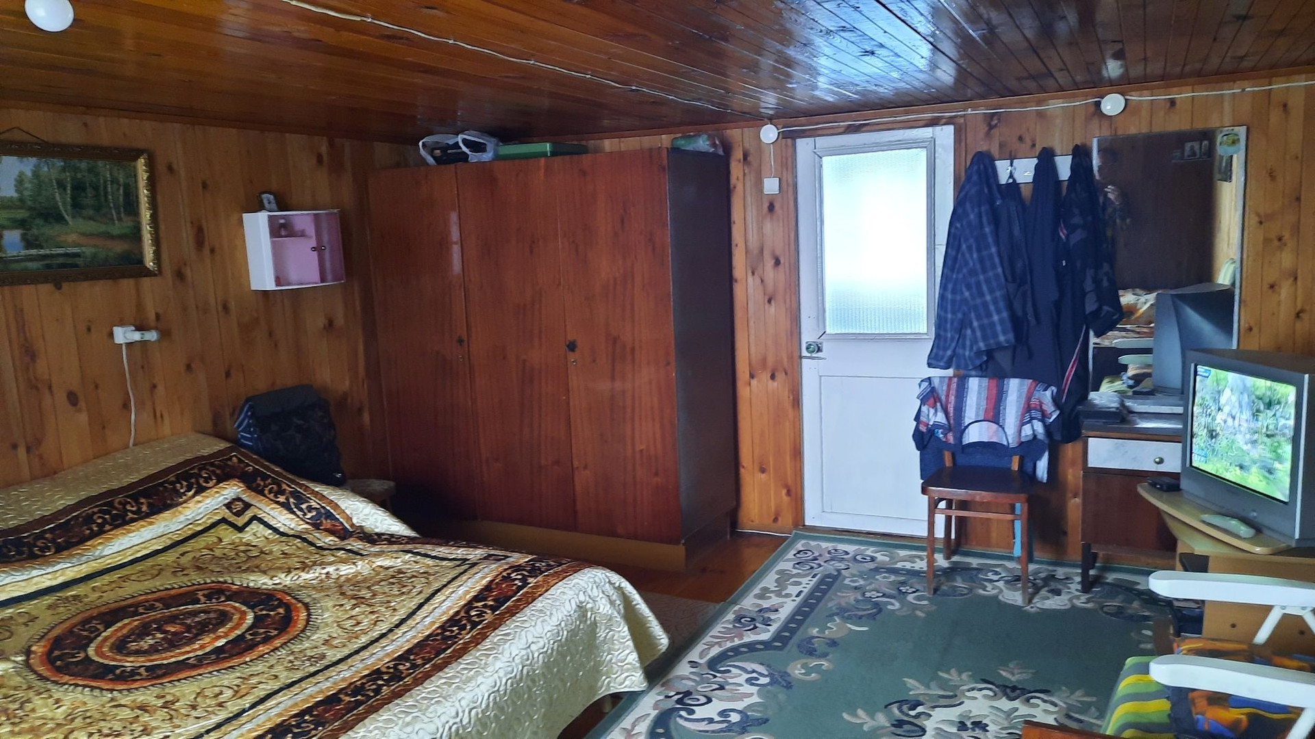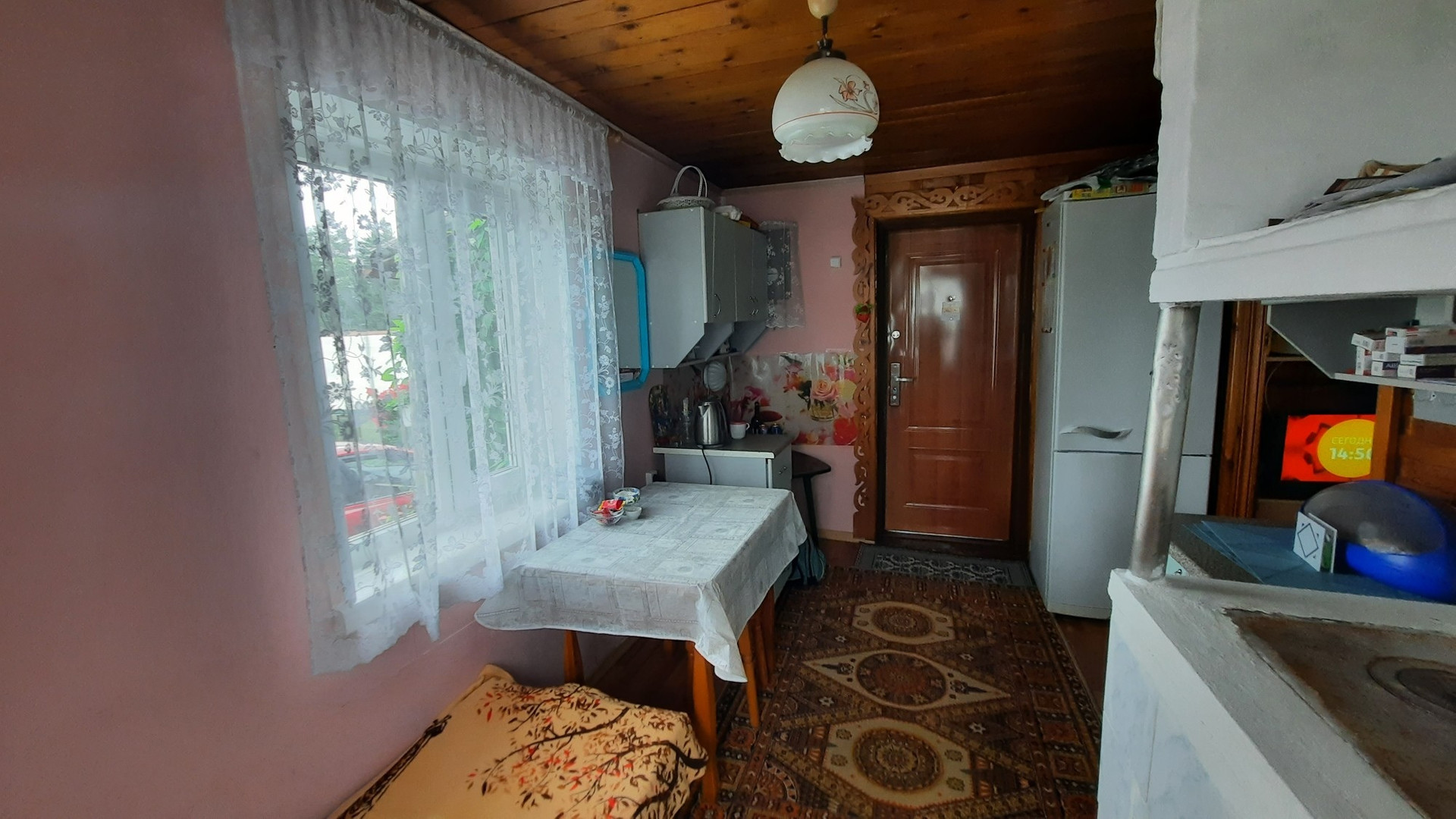 Дом уютный. На первом этаже расположены две комнаты и веранда с кухней. На втором этаже расположены комната, коридор и кладовая. Отопление печное. Есть электричество, газ (баллон),  вода. На участке расположены две теплицы, баня, беседка. Туалет расположен сразу за ограждением участка. Состояние всех построек хорошее. Земельный участок прямоугольной формы, площадью 6,4 соток. Расположен на крайней улице, со стороны леса ограждён забором, есть калитка для выхода в лес и туалет. Имеются плодово-ягодные насаждения, лужайки, декоративные растения. О местоположении: находится к 5-ти километрах от г.Полевской. Ходит общественный транспорт.