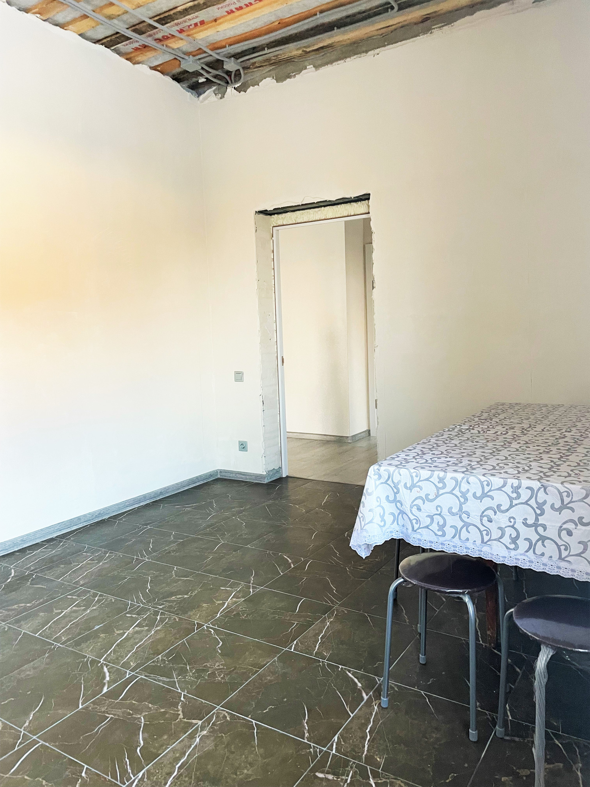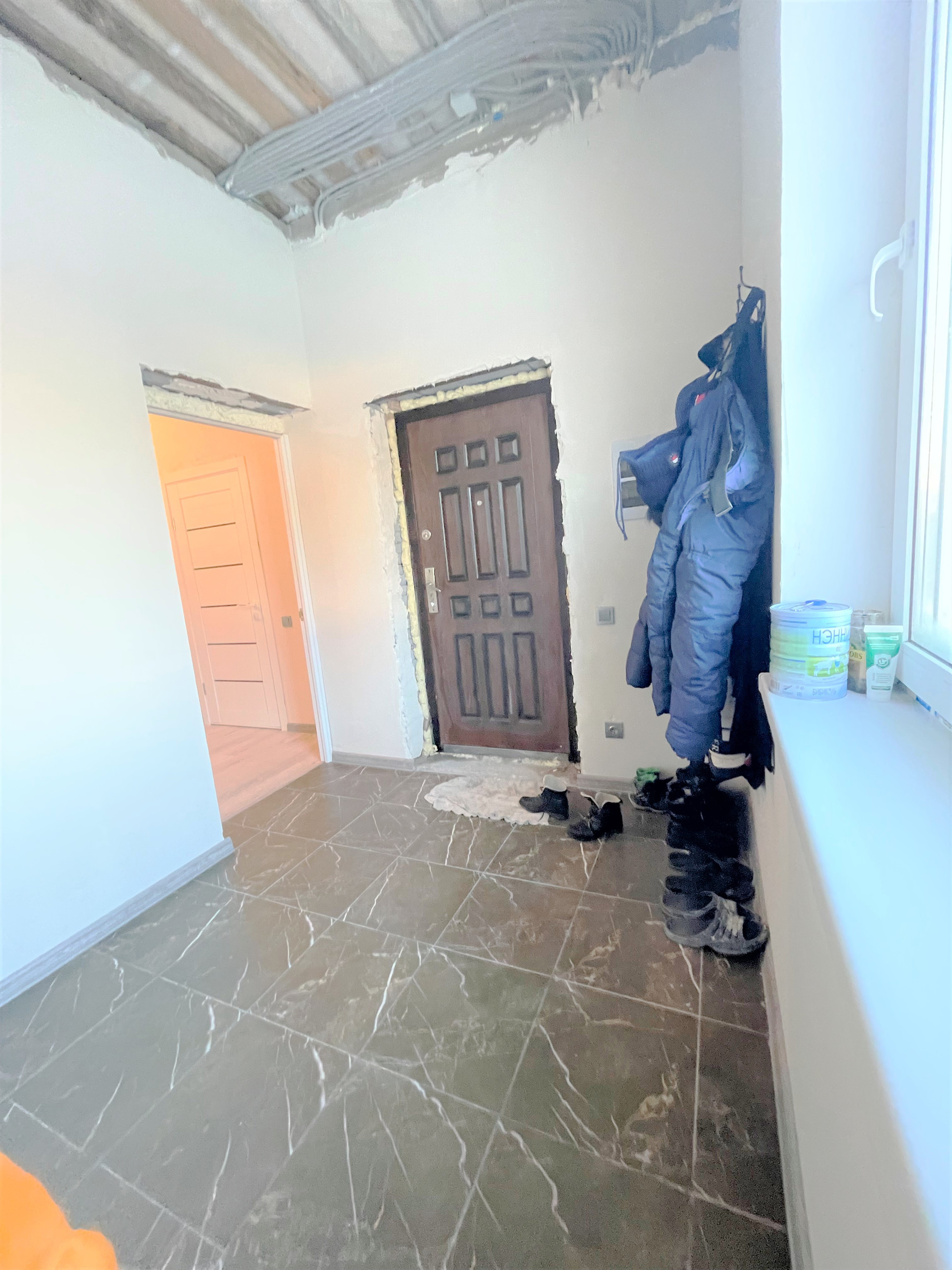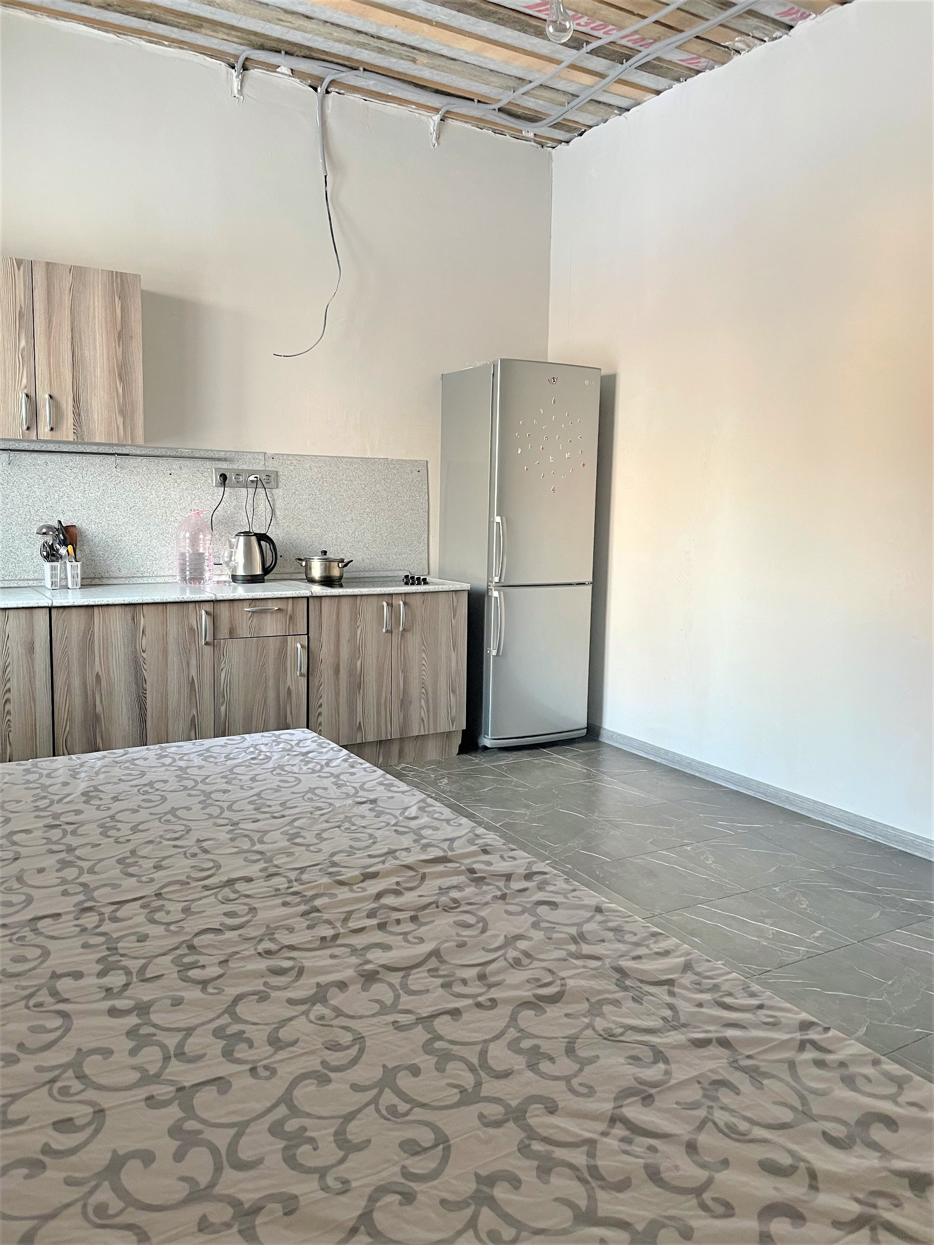 Пол: ламинат, керамогранит;