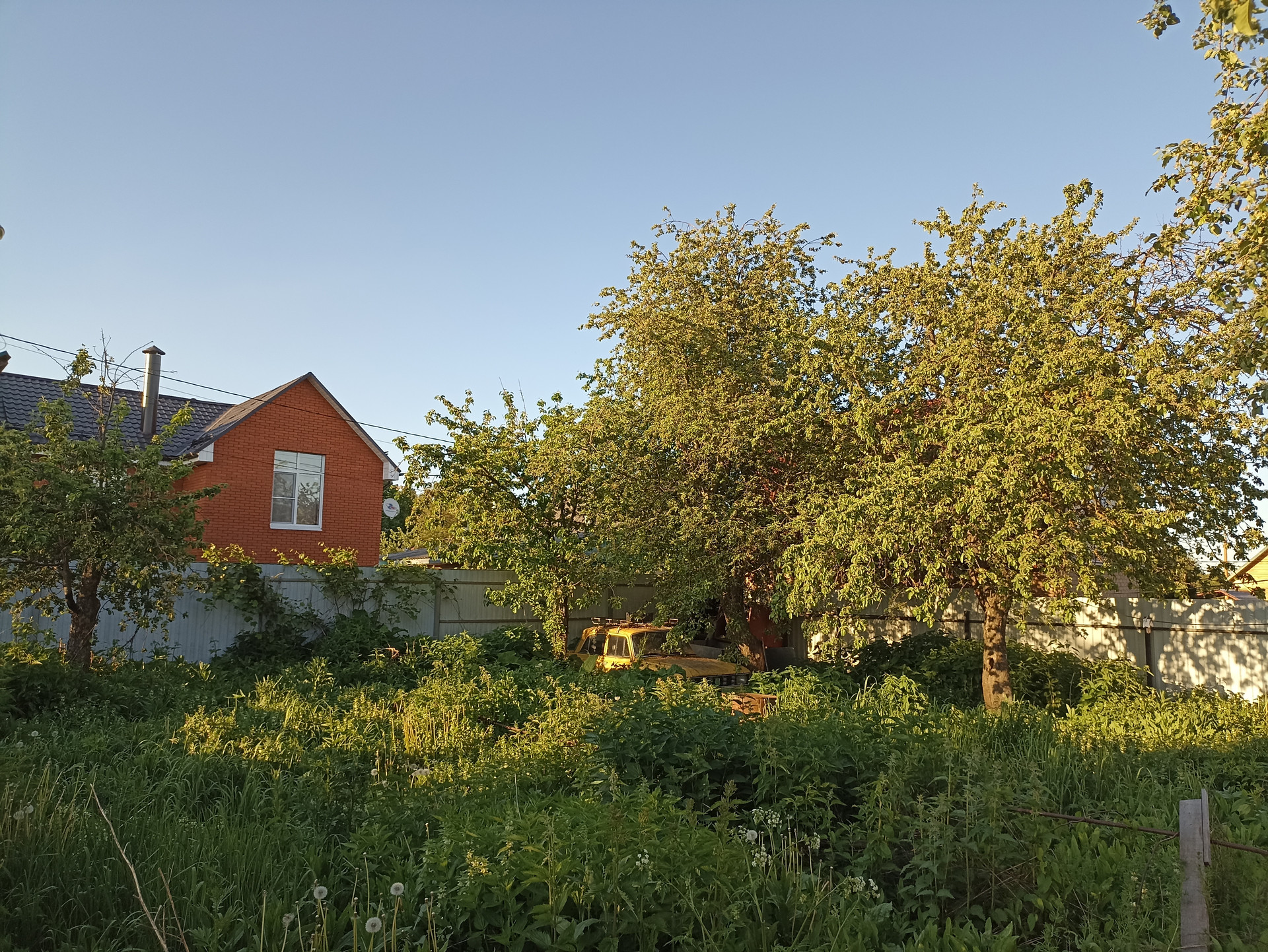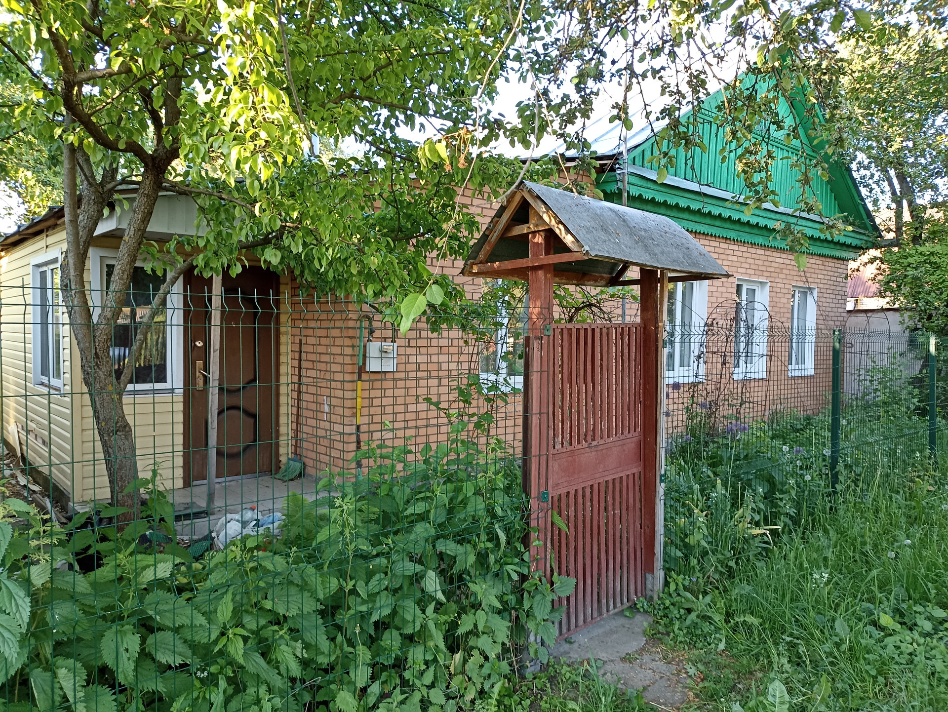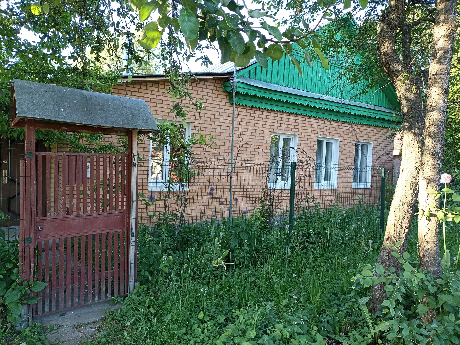 Участок: 20х30м, огорожен, с плодовыми деревьями (груши, яблони), кустарниками, цветами. Имеется кирпичный гараж.