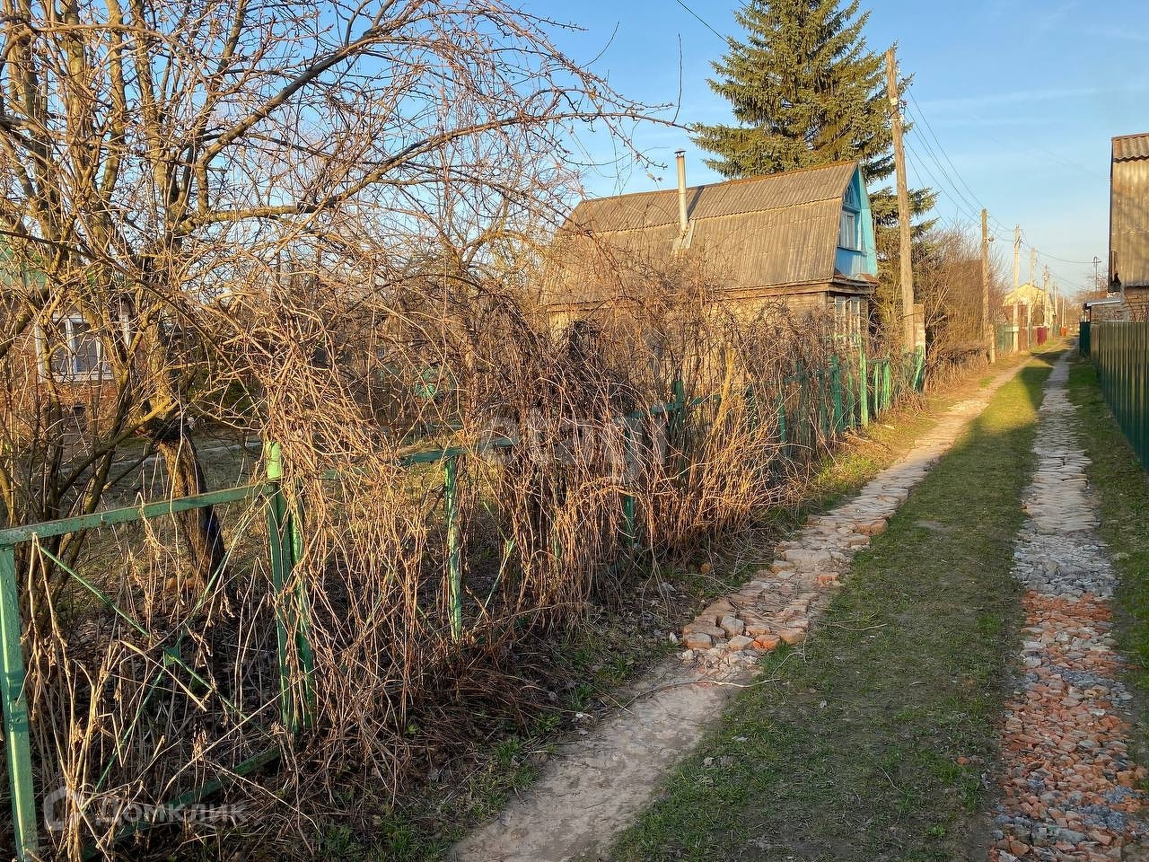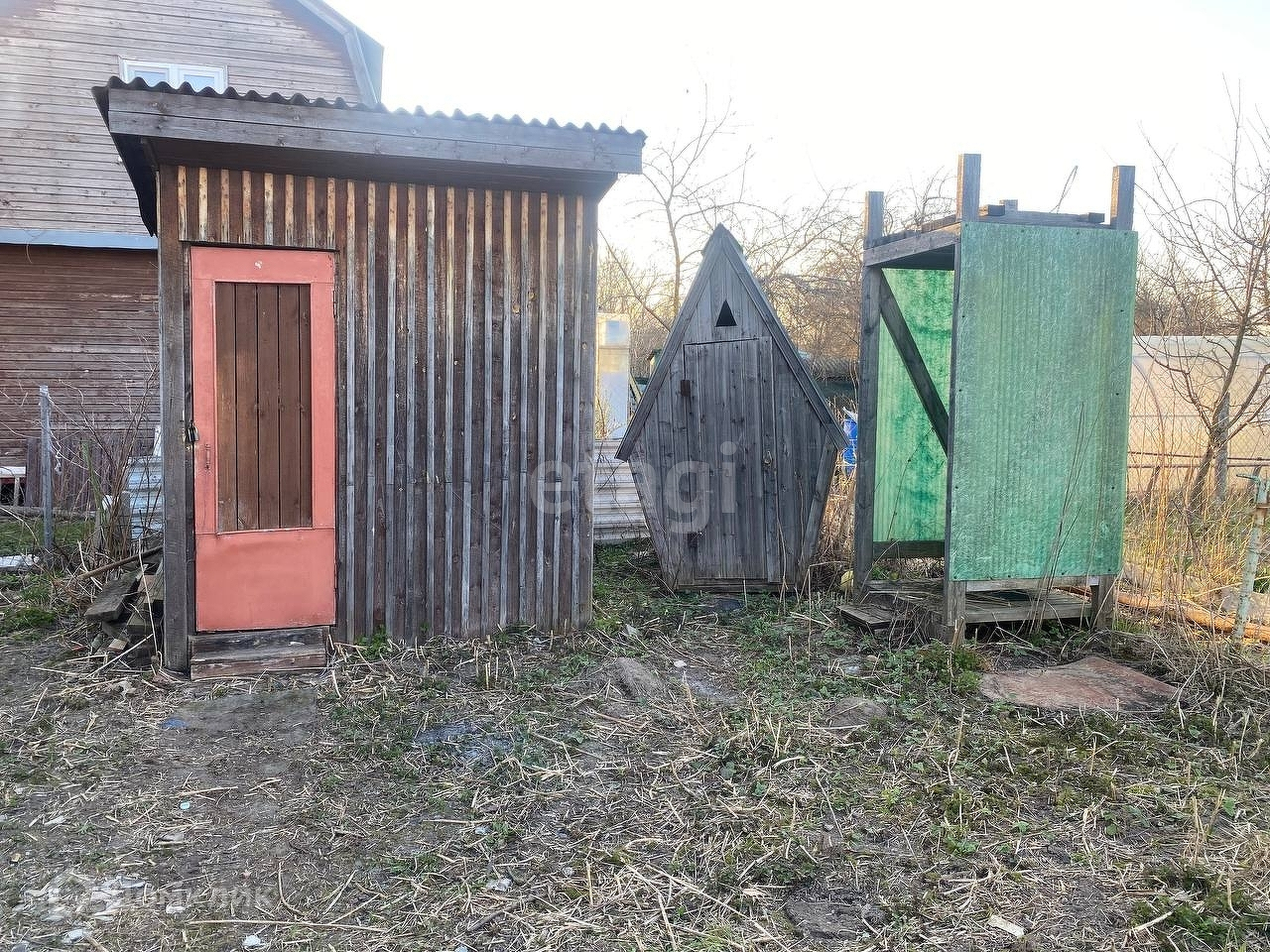 Растут плодовые и декоративные деревья и кустарники. На участке имеются сарайчик для хранения хозяйственного инвентаря, летний душ и туалет.