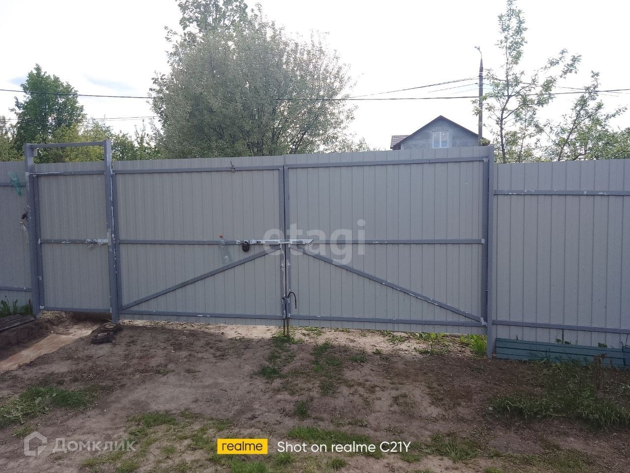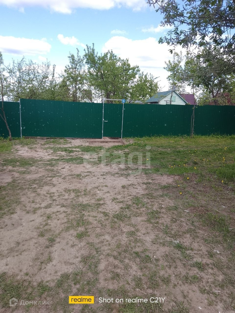 Участок по периметру огорожен профнастилом, установлены широкие въездные ворота, выполнено межевание, а значит не возникнет споров с соседями.