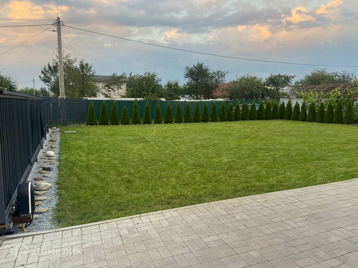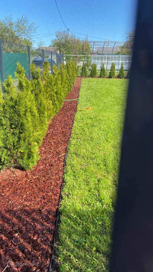 - идеально ровный участок с газоном и ландшафтным дизайном
