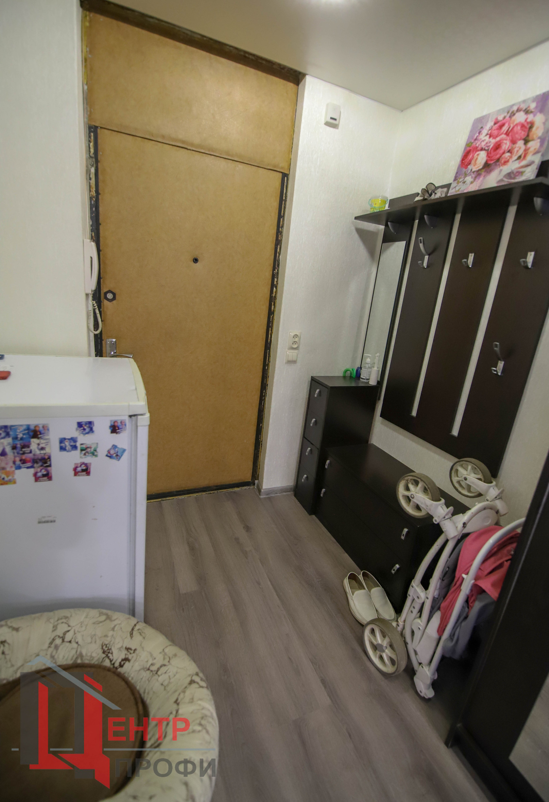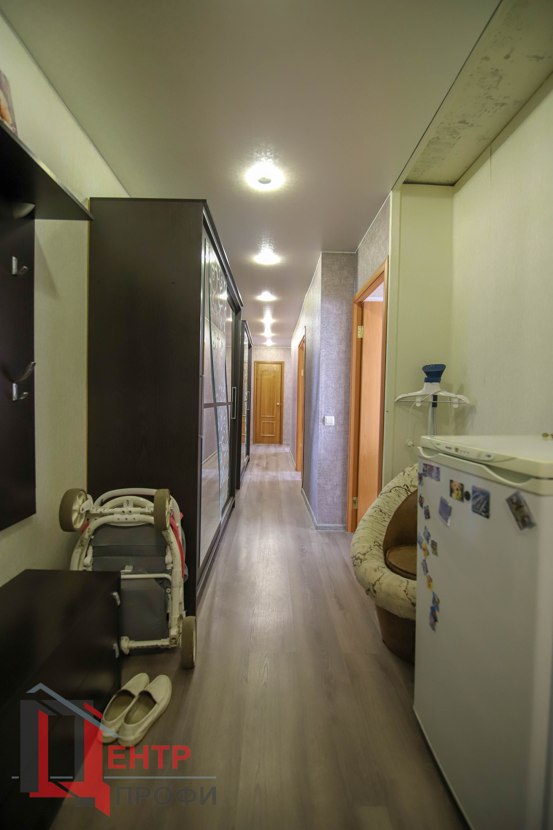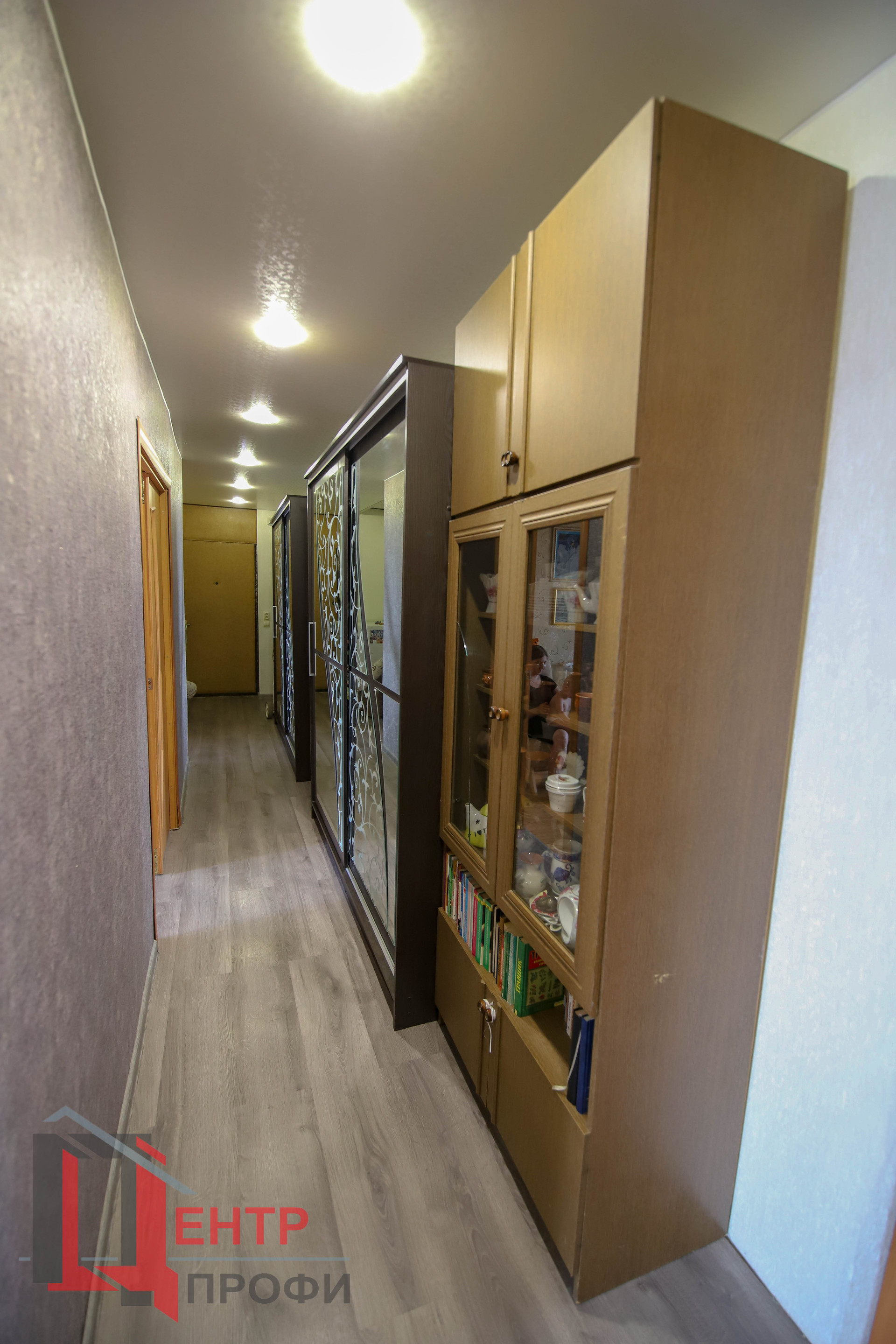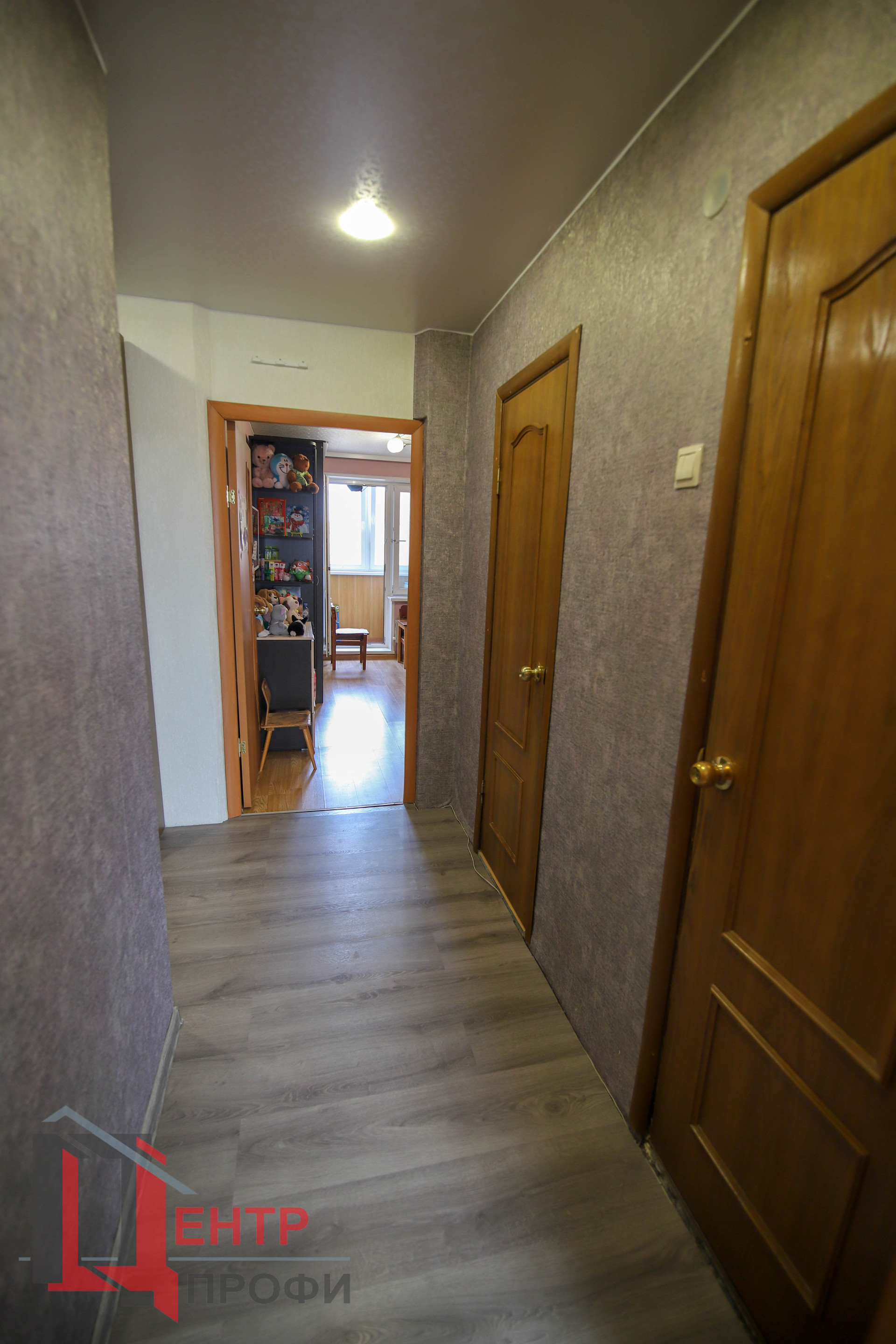 На полу ламинат 33 класса в коридоре, в комнатах ламинат по проще, на кухне – линолеум.