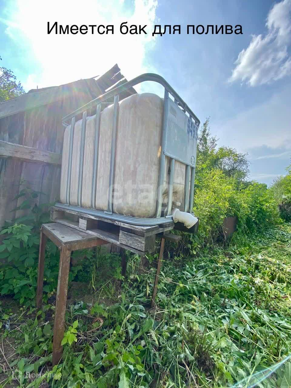 На участке имеется дом из бруса, который требует некоторых ремонтных работ. Однако, будет прекрасным подсобным помещением в момент строительства дома вашей мечты. Также на участке установлена система полива, а наличие бака для полива обеспечит вам удобство в уходе за садом и растениями.