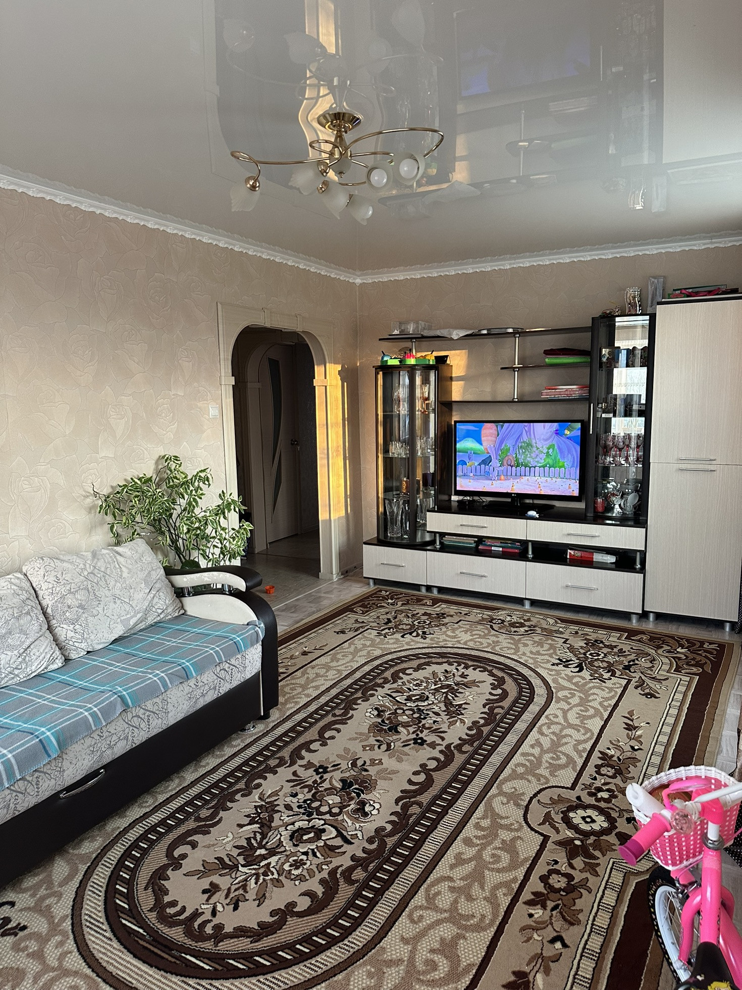 Продам светлую, теплую, 4-х комнатную квартиру, площадью 70,2 м/кв. +балкон. Квартира расположена на третьем этаже, 3-х этажного дома. Дом расположен в двух минутах от автобусной остановки, в пешей доступности есть магазины (продукт.), почта и детский сад 19 (корп.2). Теплый подъезд, в прошлом году был сделан косметический ремонт. Во всей квартире натяжные потолки,за исключением санузла. Санузел раздельный. Во всех комнатах пластиковые окна. Кухня 8,8 м/кв; детская 7,5 м/кв; спальня 11 м/кв; комната 7,8 м/кв; гостиная 19,6 м/кв; ванная 2,6 м/кв, туалет 1,3 м/кв.
