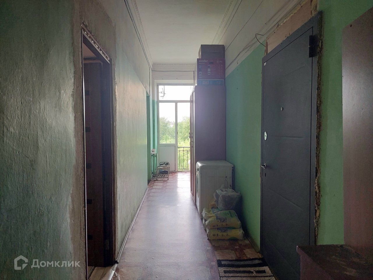 В стоимость входит диван, кухонный гарнитур, холодильник, стиральная машинка, шкаф в коридоре, мебель на кухне. Рядом с комнатой общий балкон. Квартира коридорного типа, много места.