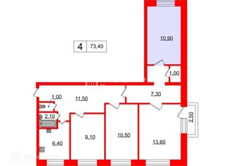 Общая площадь: 73.4 м2