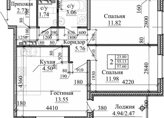 Продам 2-ком. квартиру, 55 м2, Понтонный проезд, 6