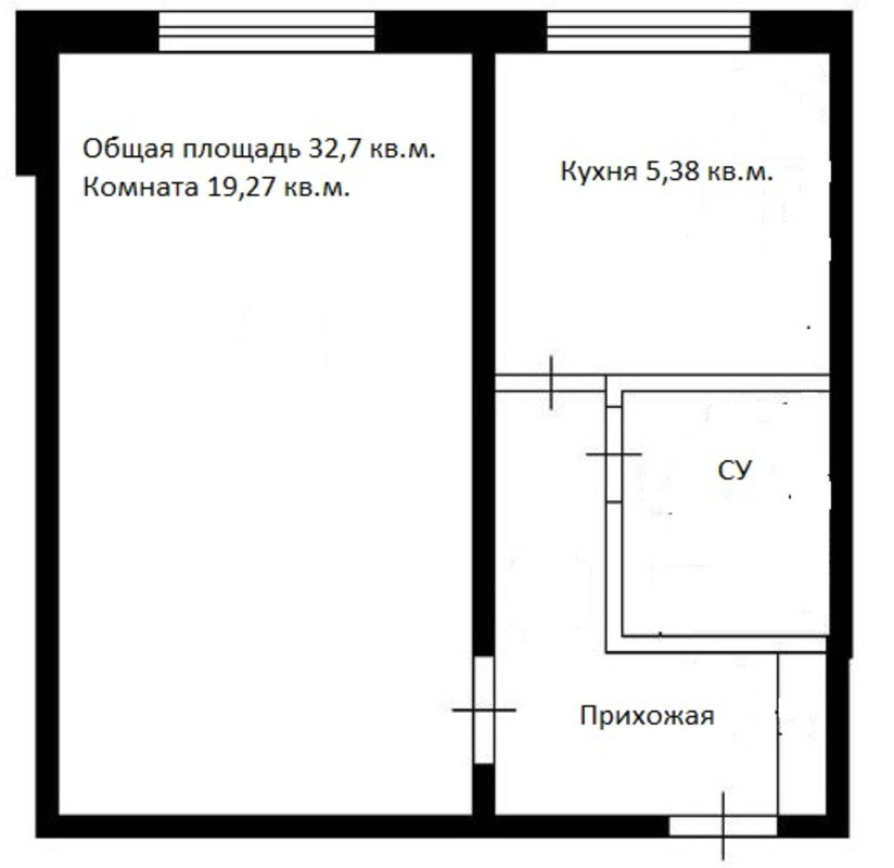 Общая площадь 32.7 м2