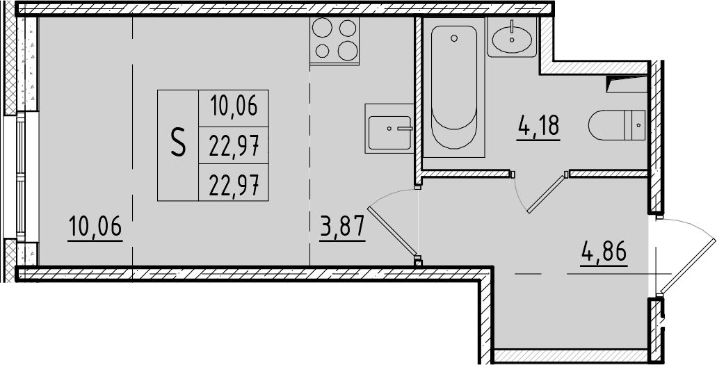 Общая площадь 22.97 м2