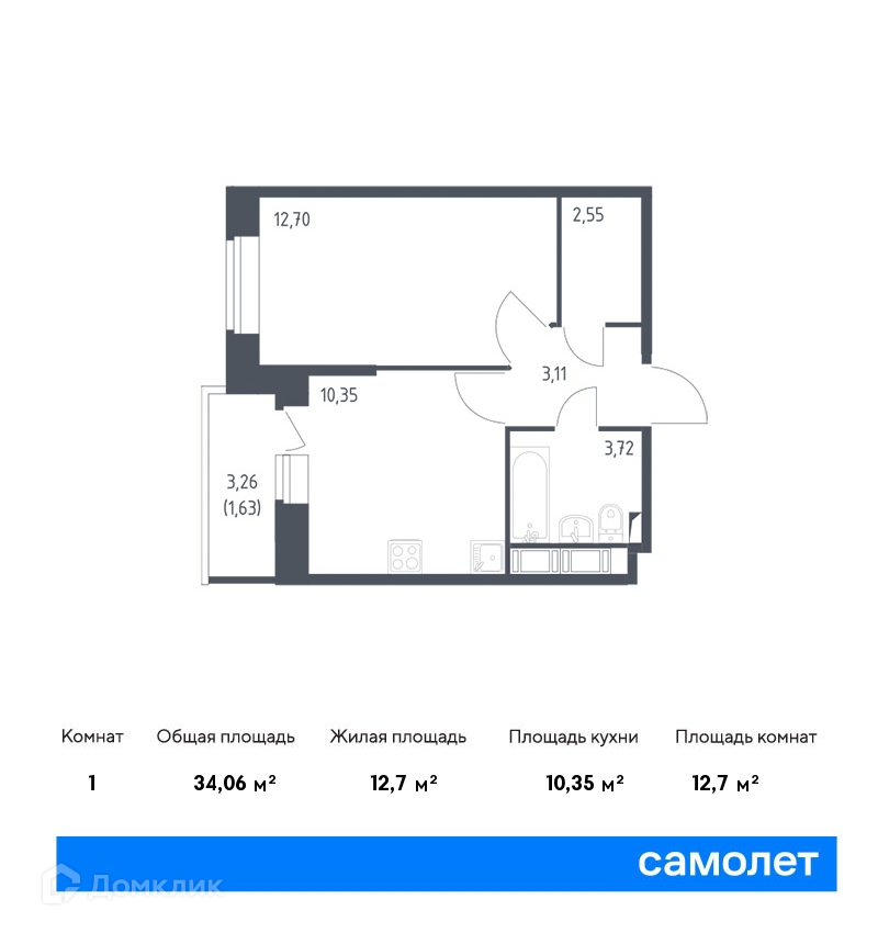 Общая площадь 34.06 м2