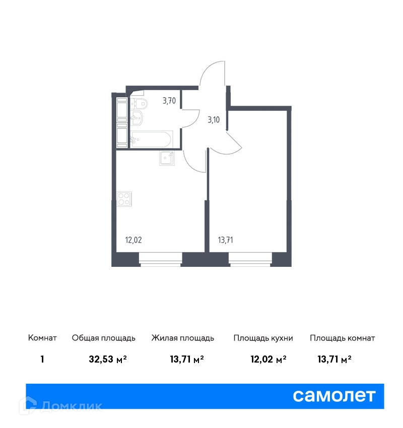 Общая площадь 32.53 м2