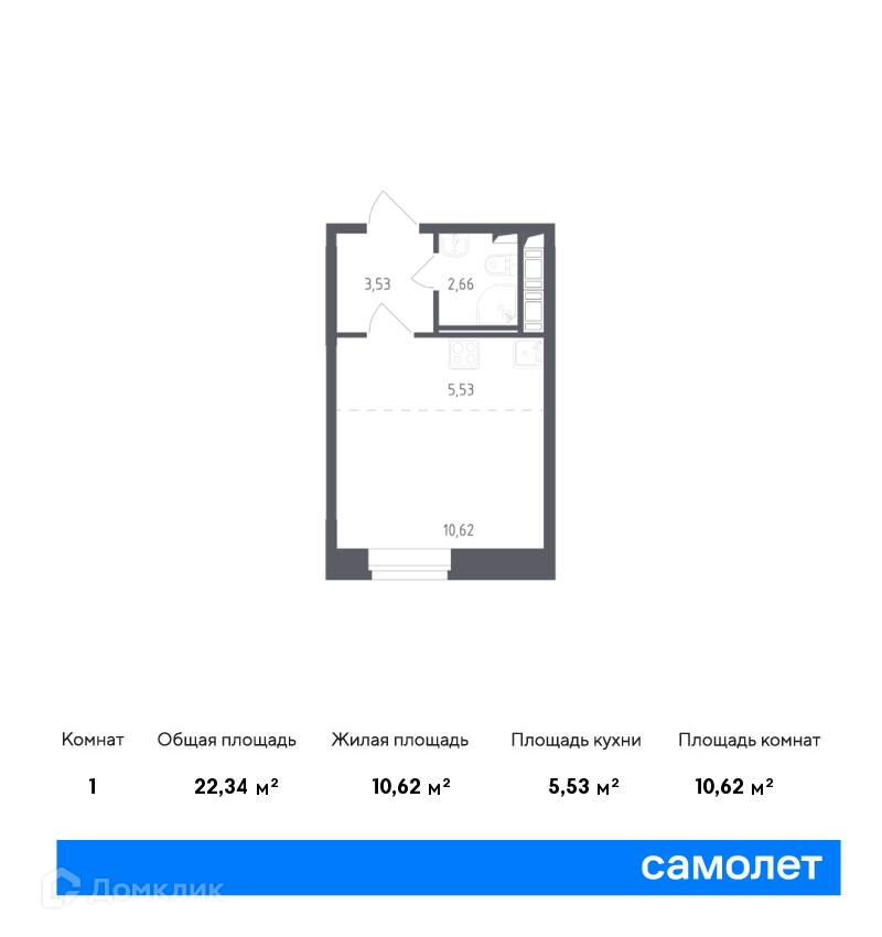 Общая площадь 22.34 м2