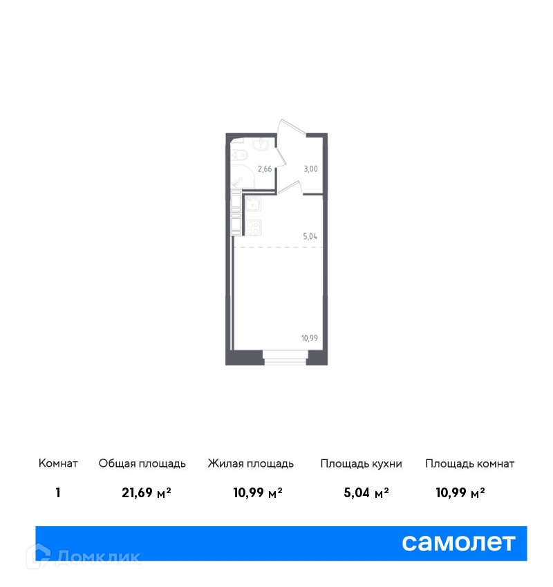 Общая площадь 21.69 м2