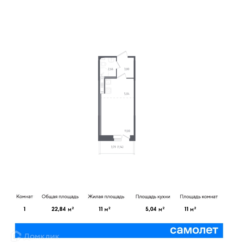 Общая площадь 22.84 м2