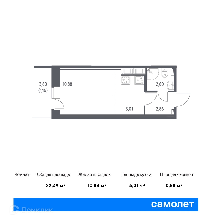 Общая площадь 22.49 м2