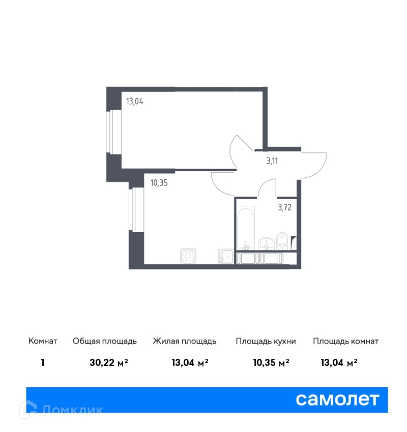 Общая площадь 30.22 м2