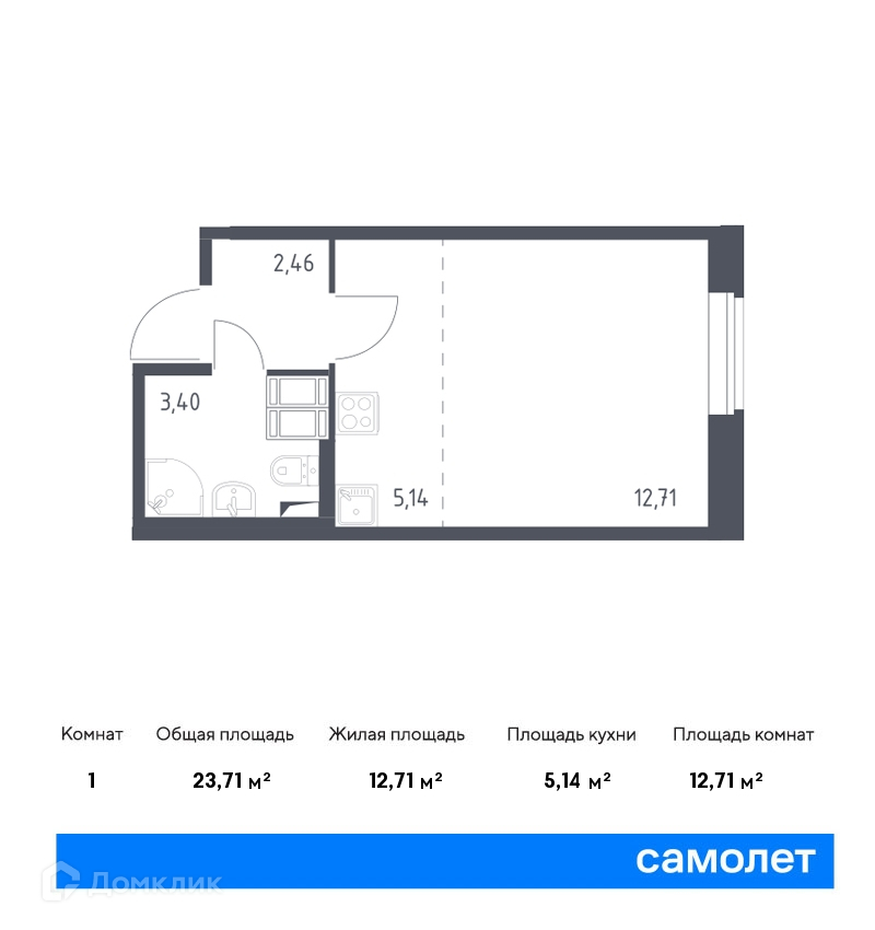 Общая площадь 23.71 м2