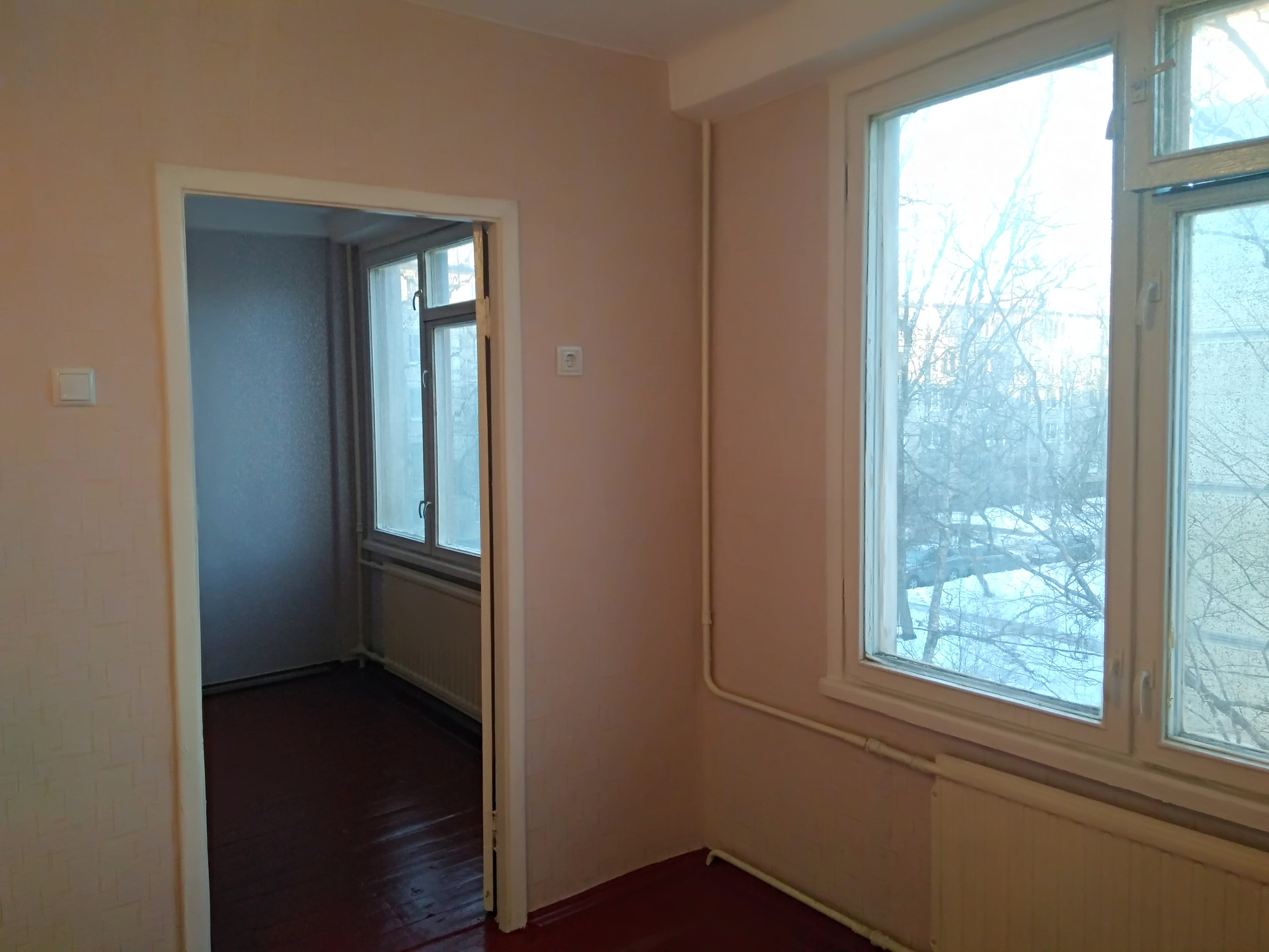 Продается 3х к.кв. с двумя раздельными комнатами в центре Колпино на у. Павловская д. 78. Общая площадь квартиры 42 м2, жилая 28,3 м2, комната 14,5 м2, 7,3 м2 и 6,5 м2. Кухня 5,7 м2, прихожая 4,9 м2 , санузел 2,6 м2 (совмещенный). Квартира теплая, светлая, расположена на 3 этаже. В квартире выполнен косметический ремонт, выровнены стены (новые светлые обои), потолки (шпаклевка, грунтовка, покраска), заменены розетки, выключатели, установлены новые смесители на воду. В парадной сделан ремонт. Рядом с домом школа, детский сад, спортивная школа, сквер, детская площадка, магазины. Хорошая транспортная доступность, до остановки автобуса 5 мин. пешком. Метро Шушары, Купчино, ж.д. вокзал Колпино – Московский вокзал – центр СПб. В собственности более 5 лет. Один собственник. Никто не прописан. Прямая продажа. Торг.