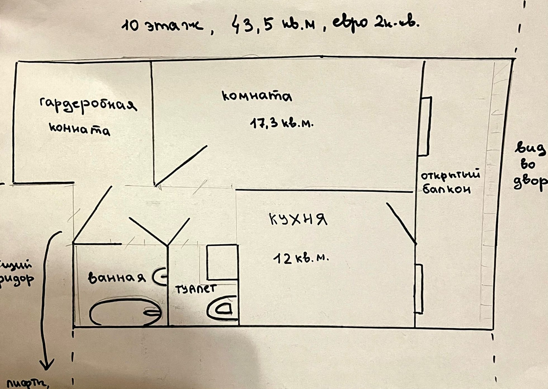 Общая площадь 43.5 м2